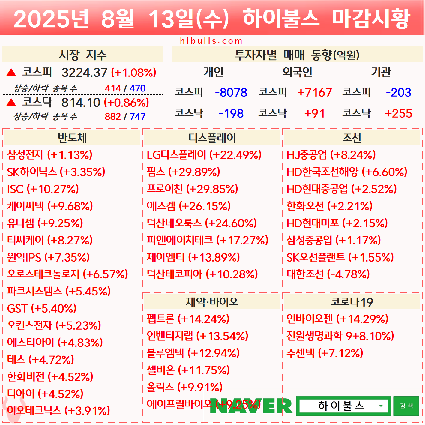[08.13] 증시 마감시황 및 오늘의 특징주/특징섹터