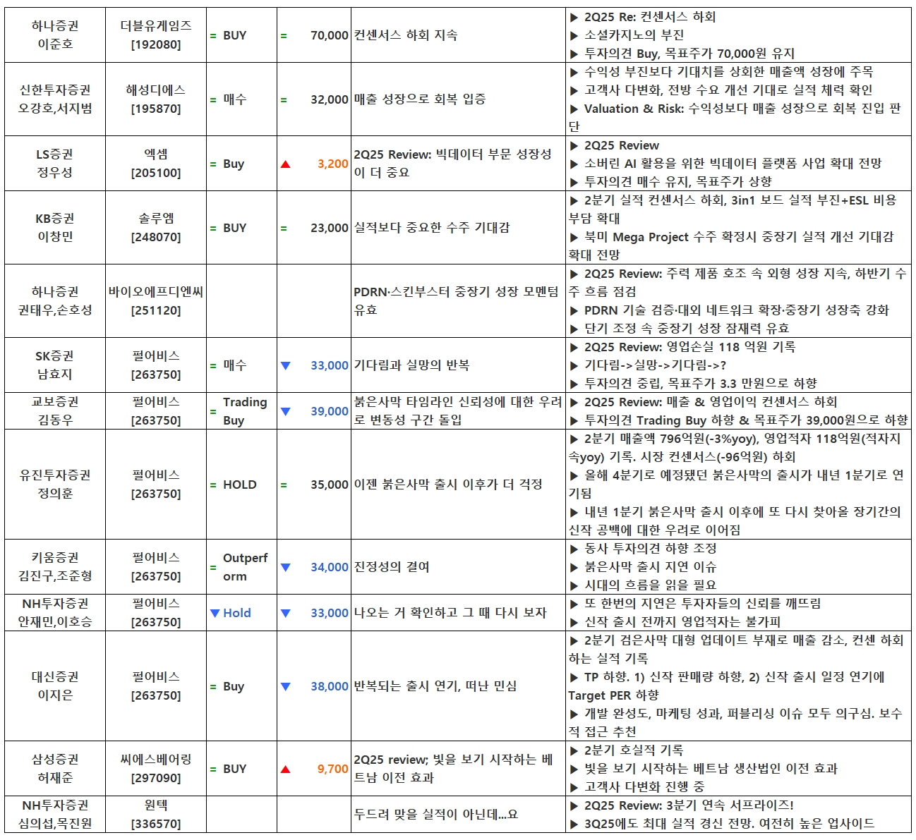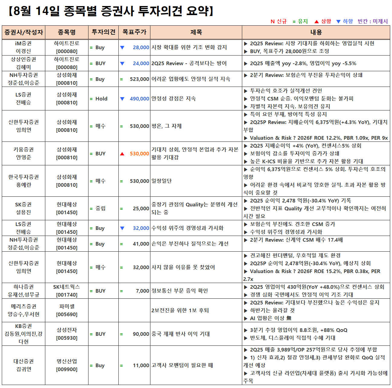 (이미지 내 글자가 잘 보이지 않으면 웹브라우저, 휴대폰 화면을 ‘가로화면’으로 보시거나, 이미지를 클릭하면 확대해서 보실 수 있습니다.) 글 내비게이션 2025년 2분기 실적 특징주(8월 13일) [08.14] 증시 마감시황 및 오늘의 특징주/특징섹터