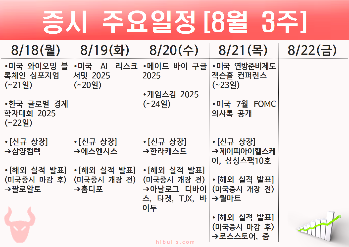 2025년 8월 3주(8.18~8.22) 주간 증시 주요 일정