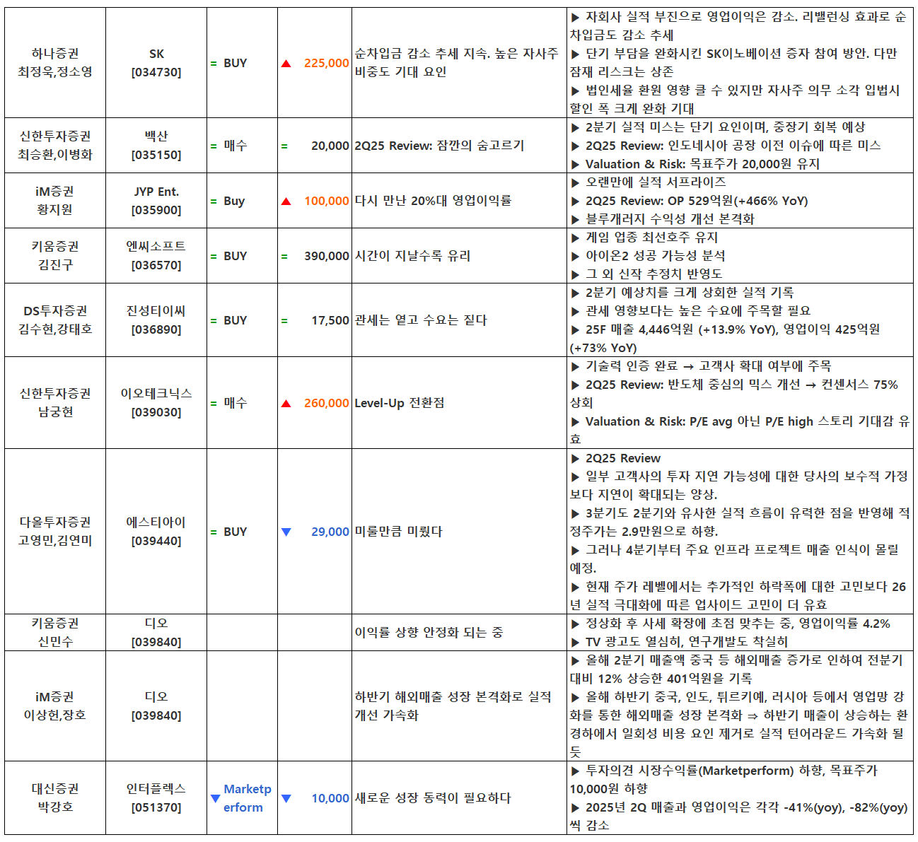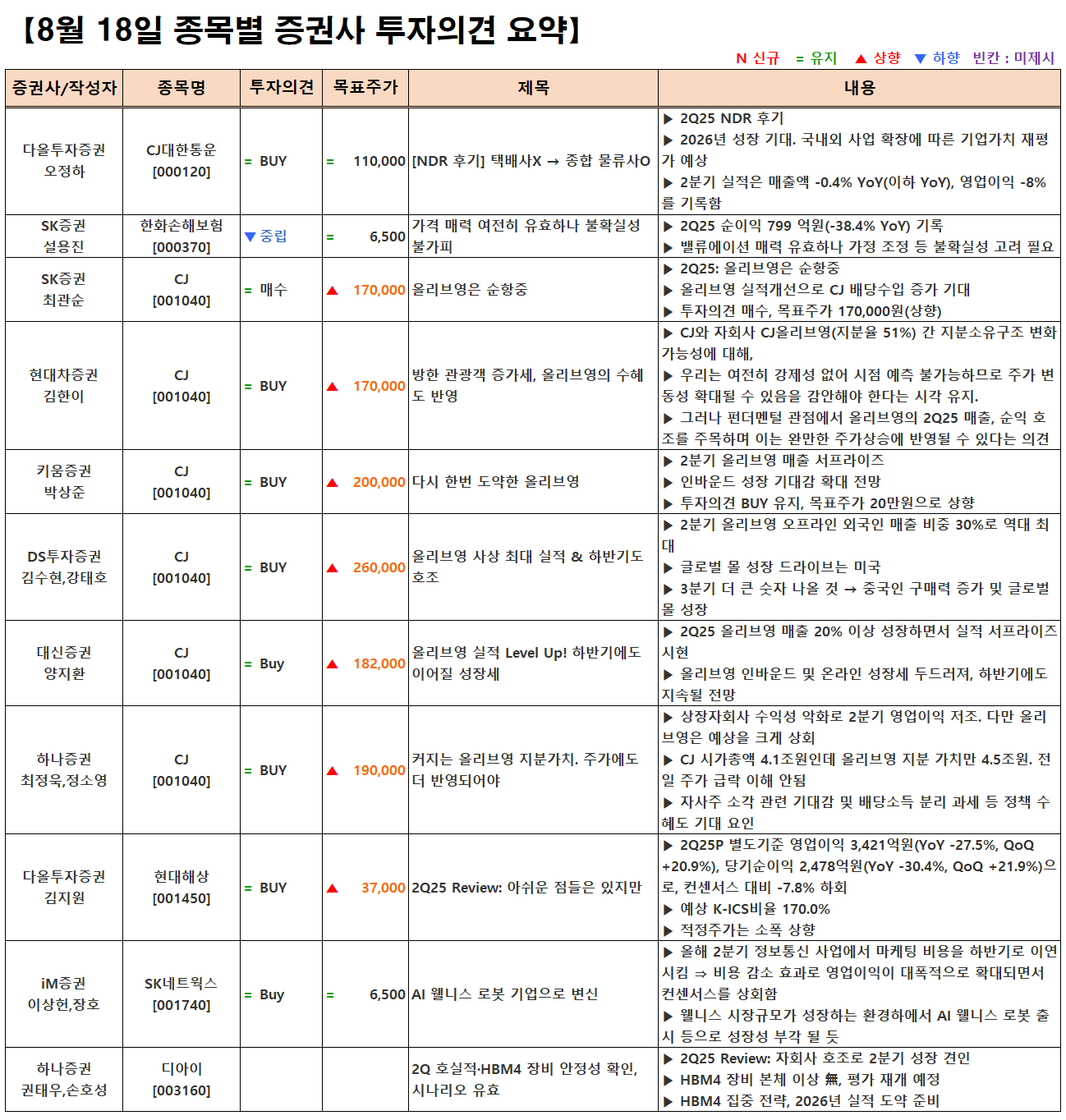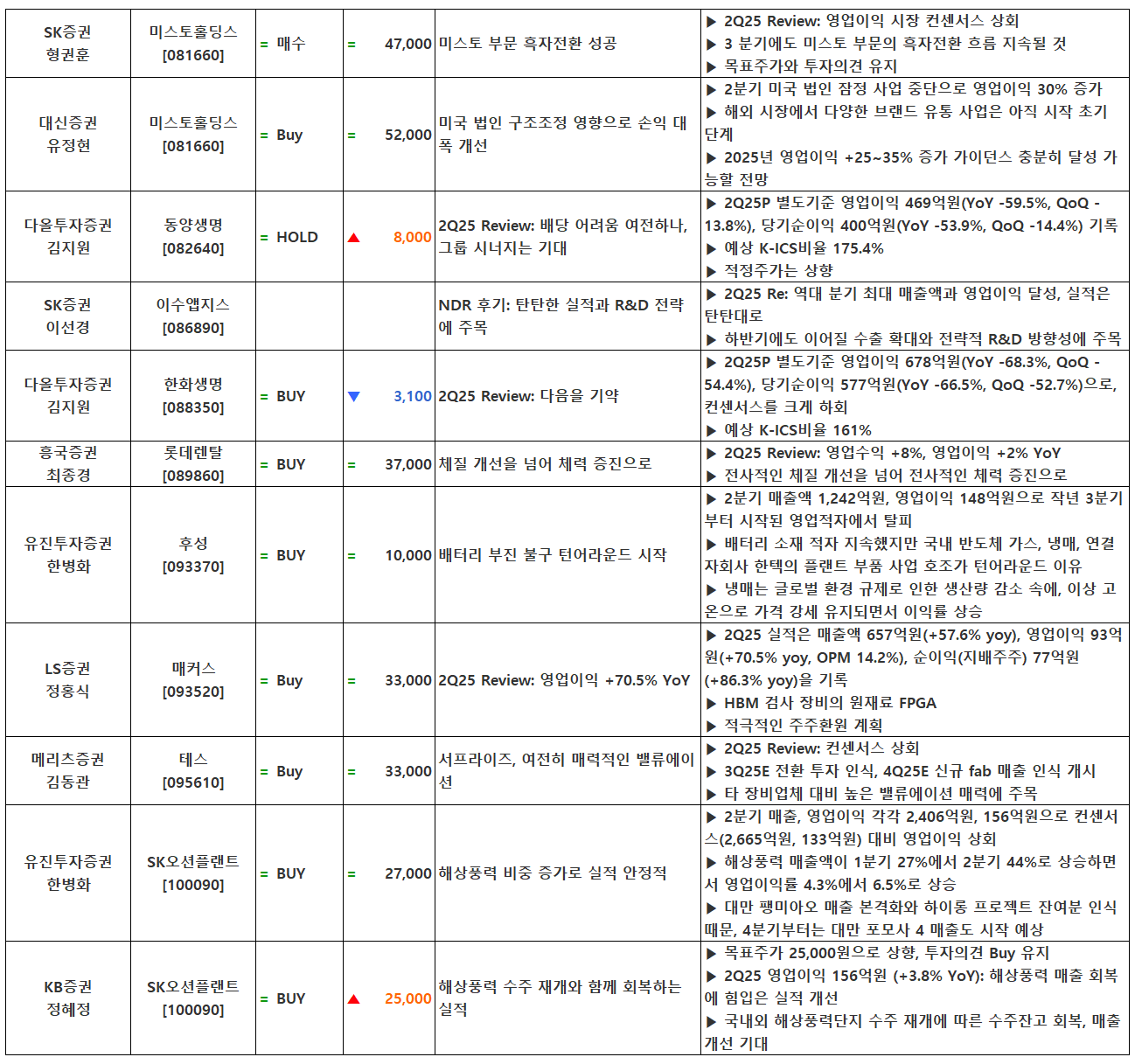 (이미지 내 글자가 잘 보이지 않으면 웹브라우저, 휴대폰 화면을 ‘가로화면’으로 보시거나, 이미지를 클릭하면 확대해서 보실 수 있습니다.) 글 내비게이션 2025년 2분기 실적 특징주(8월 14일) [08.18] 증시 마감시황 및 오늘의 특징주/특징섹터