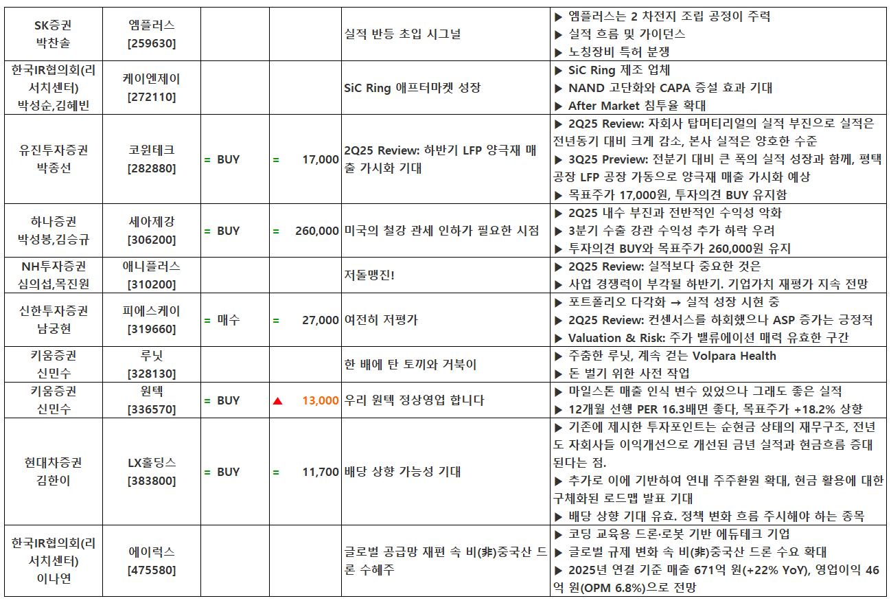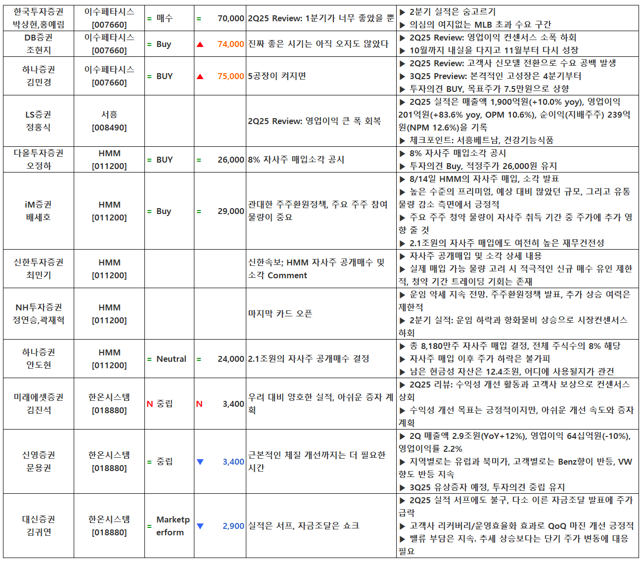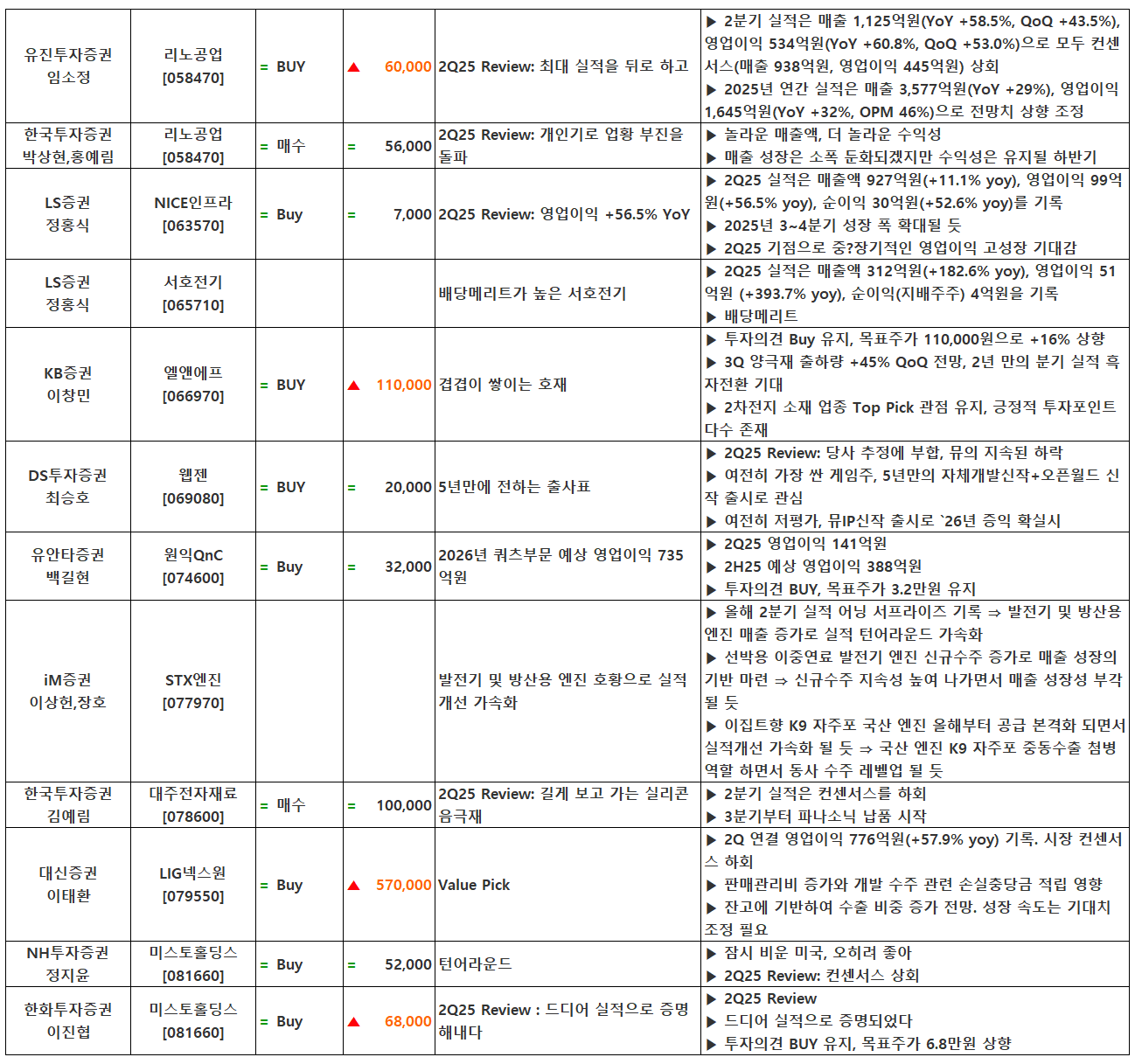 (이미지 내 글자가 잘 보이지 않으면 웹브라우저, 휴대폰 화면을 ‘가로화면’으로 보시거나, 이미지를 클릭하면 확대해서 보실 수 있습니다.) 글 내비게이션 2025년 2분기 실적 특징주(8월 14일) [08.18] 증시 마감시황 및 오늘의 특징주/특징섹터