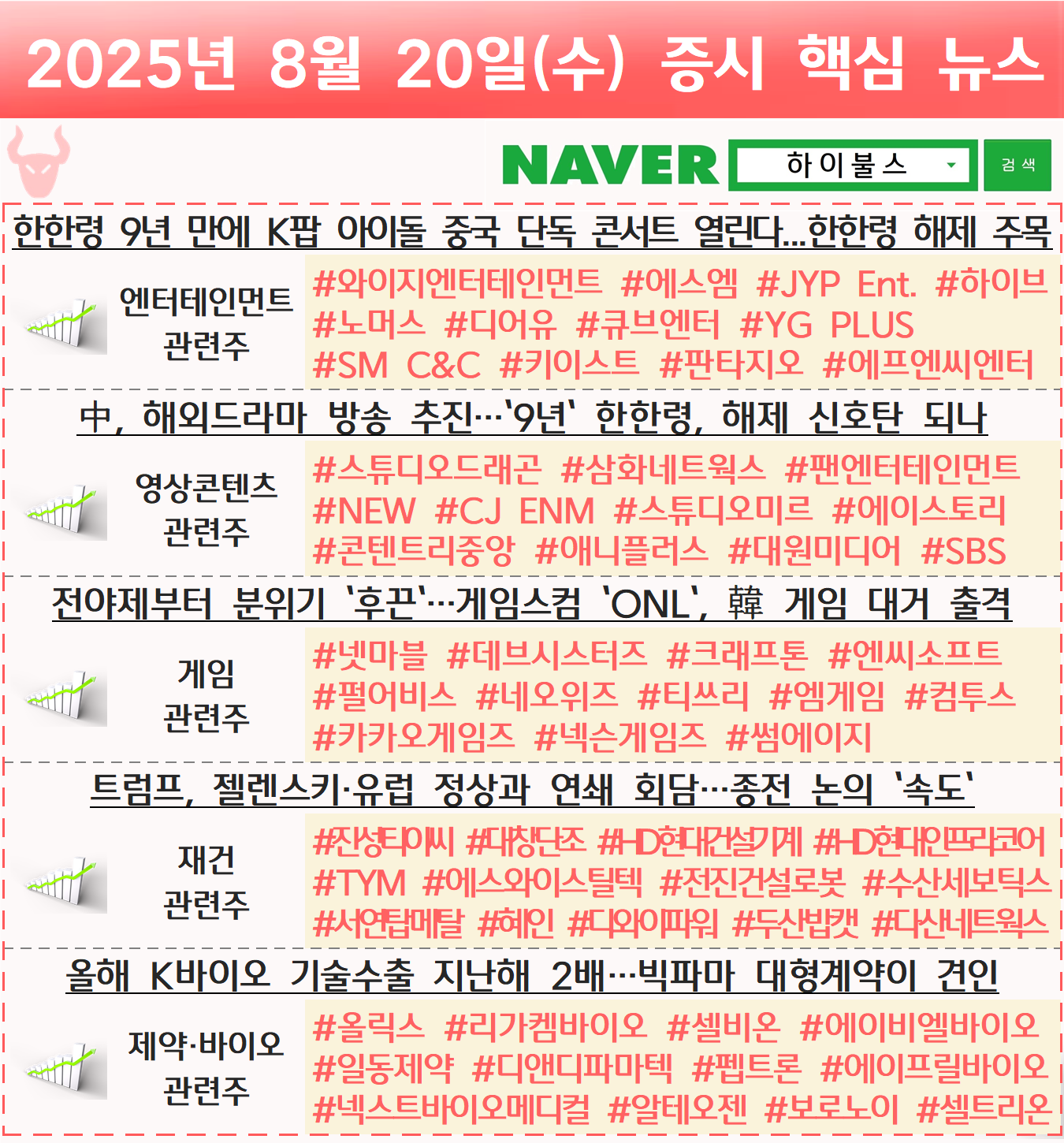 엔터테인먼트 관련주, 엔터 관련주, 한한령 관련주, 한한령 해제 관련주, 영상콘텐츠 관련주, 콘텐츠 관련주, 게임 관련주, 재건 관련주, 우크라이나 재건 관련주, 제약 바이오 관련주