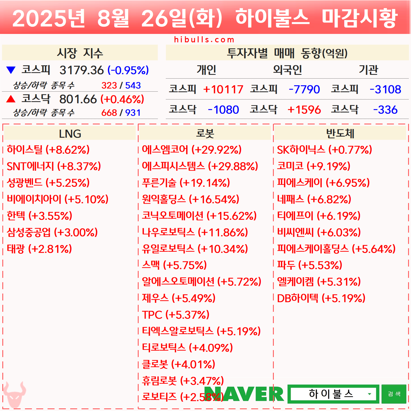 [08.26] 증시 마감시황 및 오늘의 특징주/특징섹터