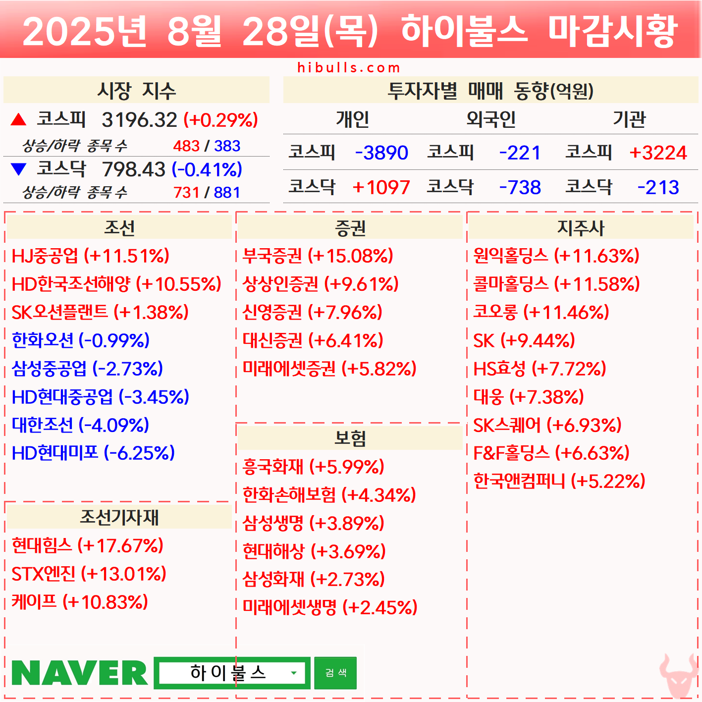 [08.28] 증시 마감시황 및 오늘의 특징주/특징섹터