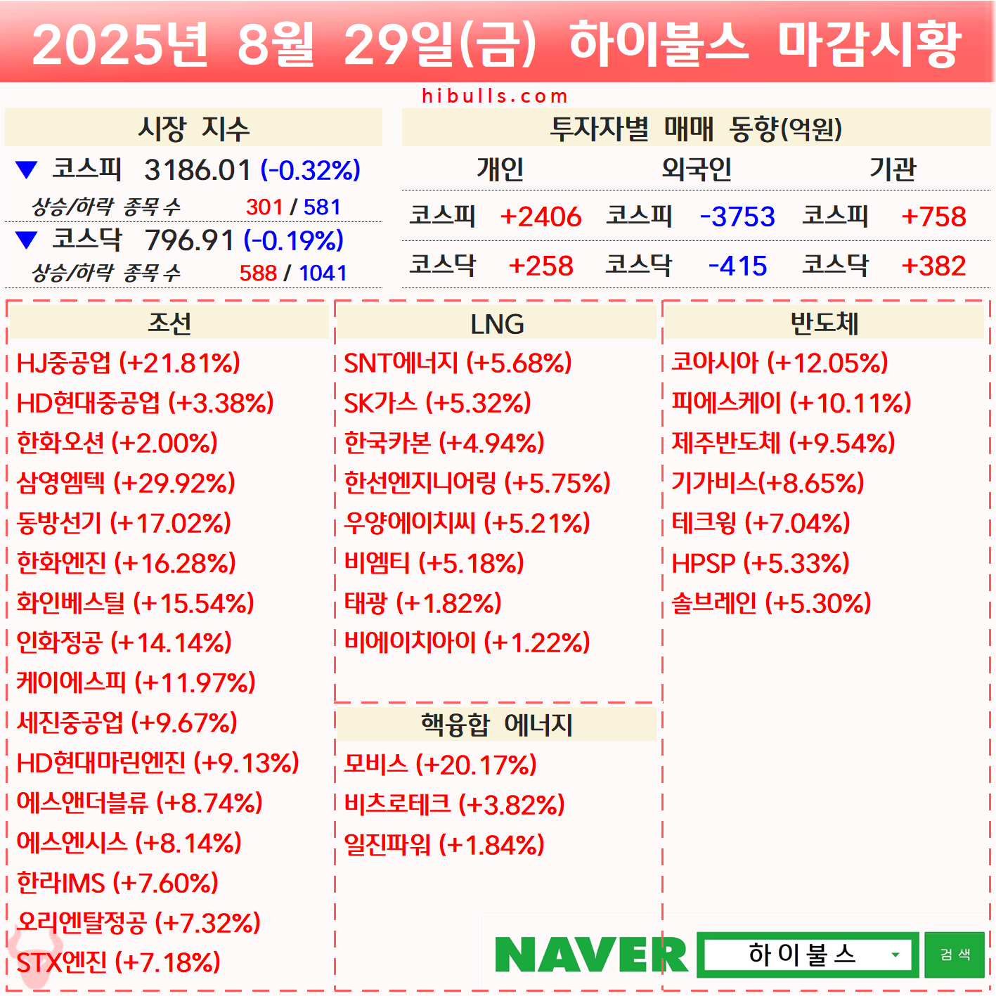 [08.29] 증시 마감시황 및 오늘의 특징주/특징섹터