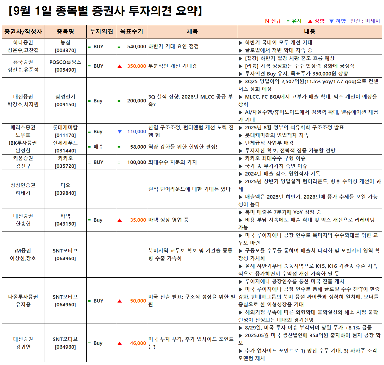 (이미지 내 글자가 잘 보이지 않으면 웹브라우저, 휴대폰 화면을 ‘가로화면’으로 보시거나, 이미지를 클릭하면 확대해서 보실 수 있습니다.) 글 내비게이션 [09.01] 증시 개장 전 시황&오늘의 대응 전략 [09.01] 증시 마감시황 및 오늘의 특징주/특징섹터