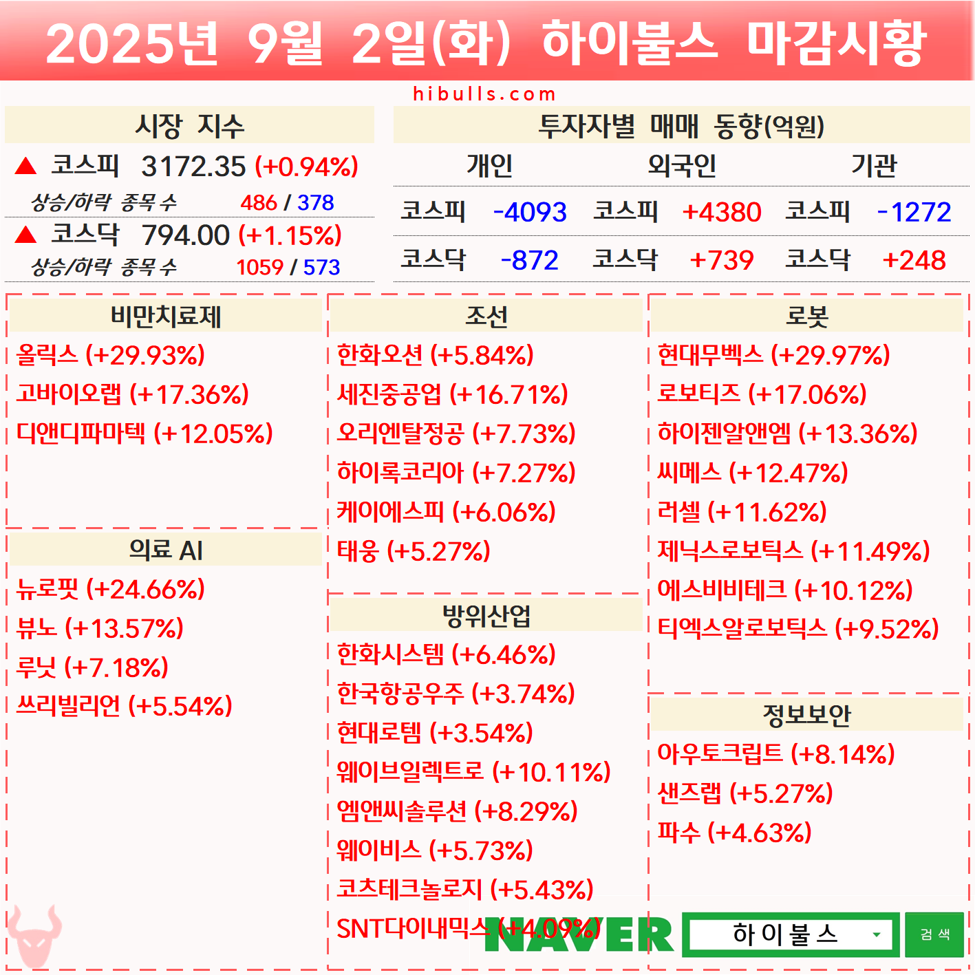 [09.02] 증시 마감시황 및 오늘의 특징주/특징섹터