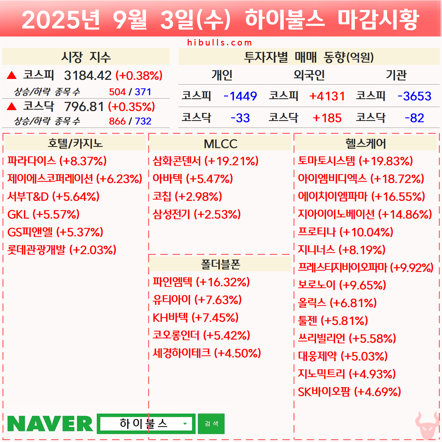 [09.03] 증시 마감시황 및 오늘의 특징주/특징섹터