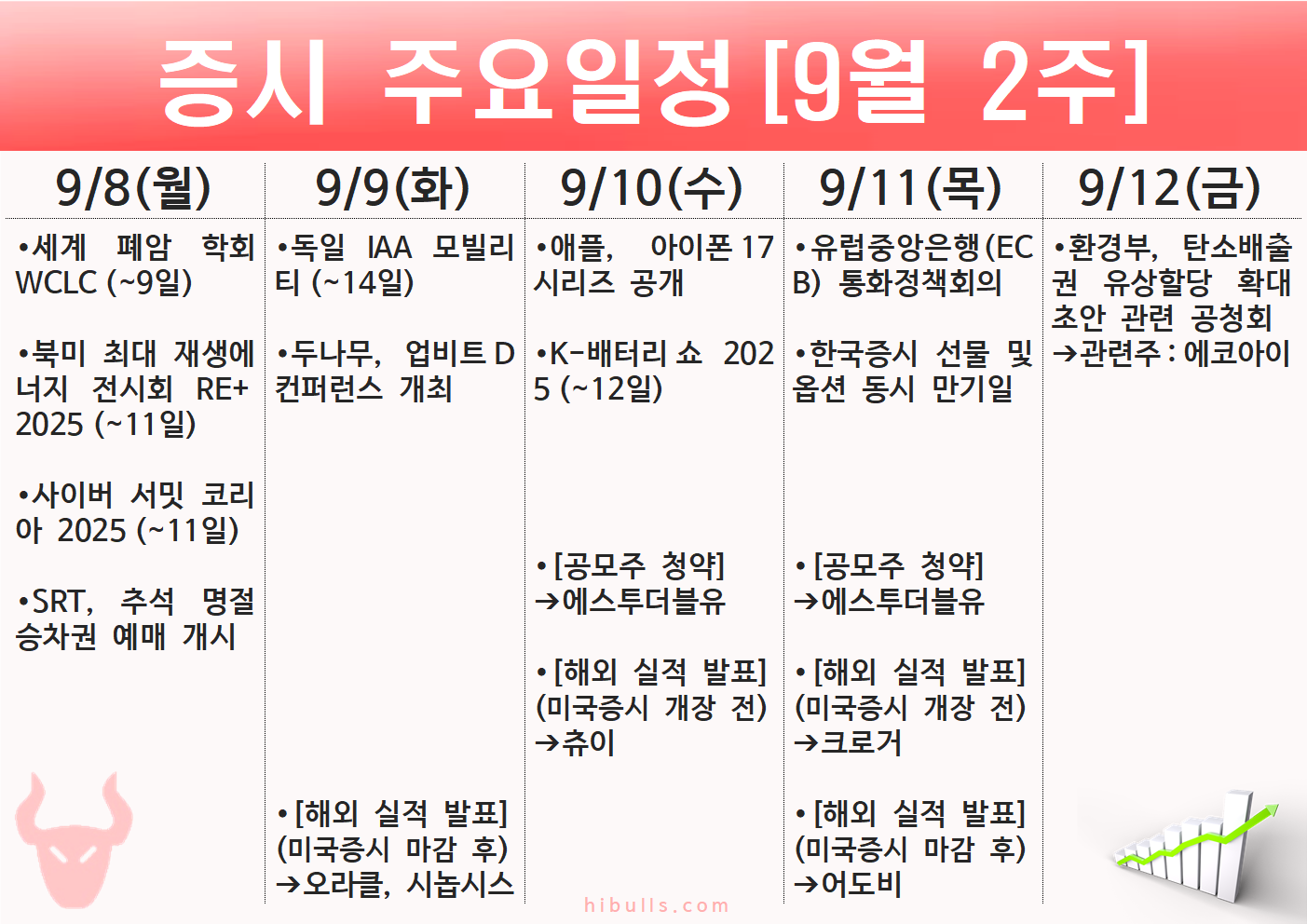 2025년 9월 2주(9.8~9.12) 주간 증시 주요 일정