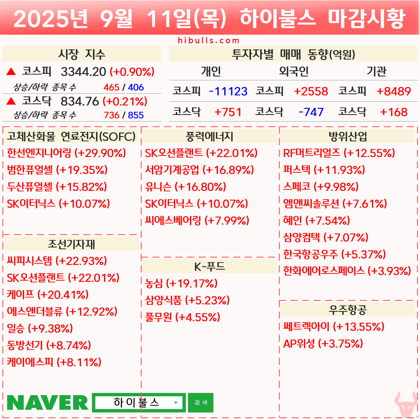 [09.11] 증시 마감시황 및 오늘의 특징주/특징섹터