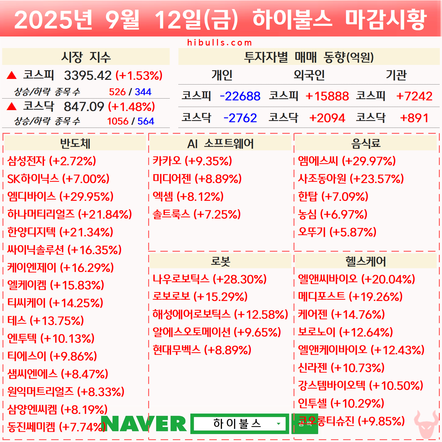 [09.12] 증시 마감시황 및 오늘의 특징주/특징섹터