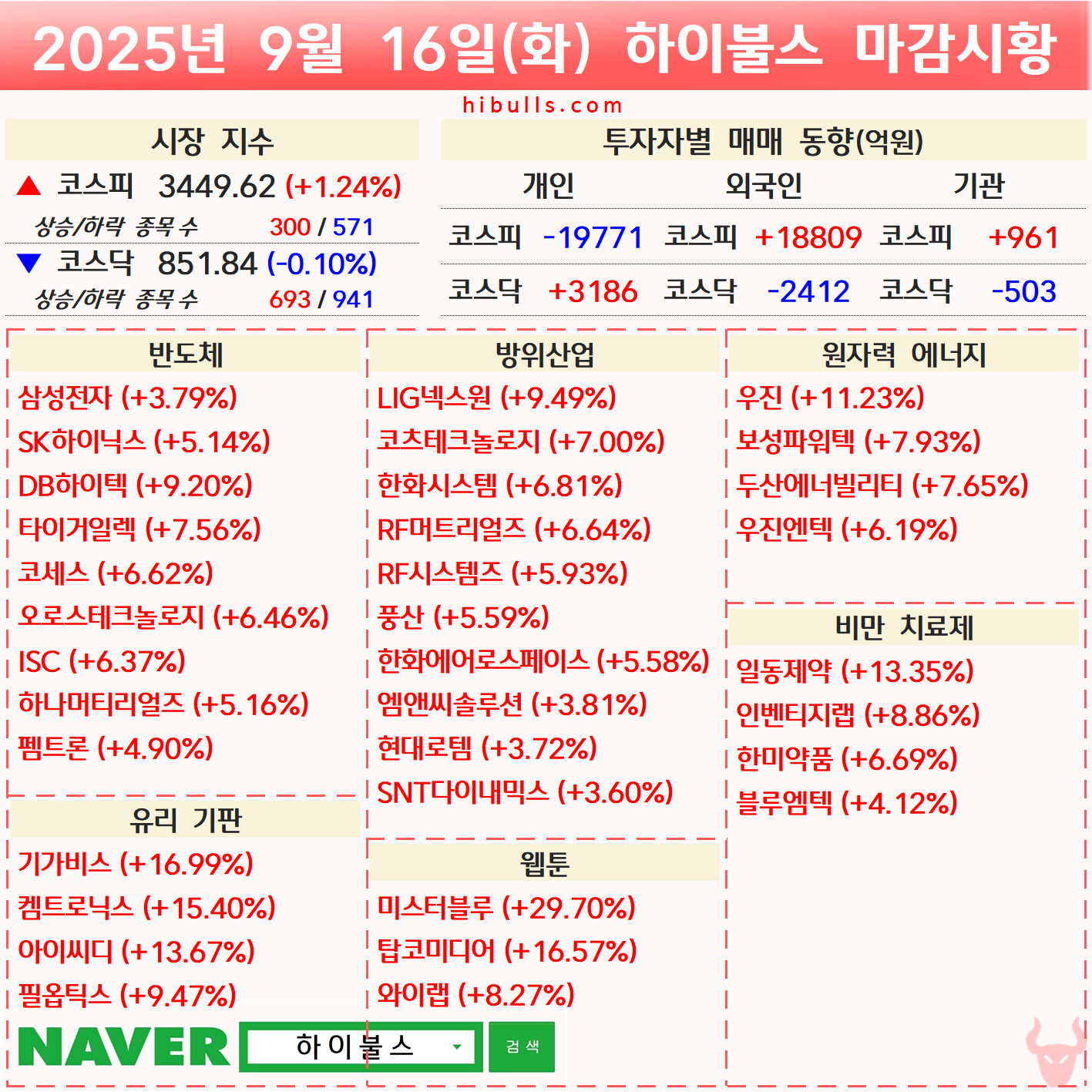 [09.16] 증시 마감시황 및 오늘의 특징주/특징섹터