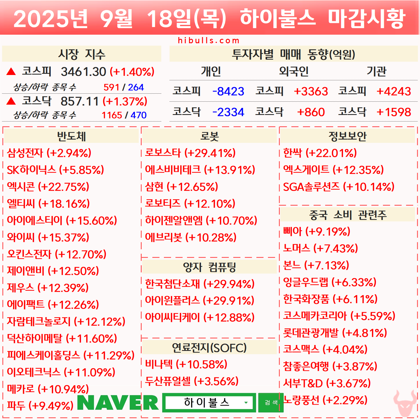 [09.18] 증시 마감시황 및 오늘의 특징주/특징섹터