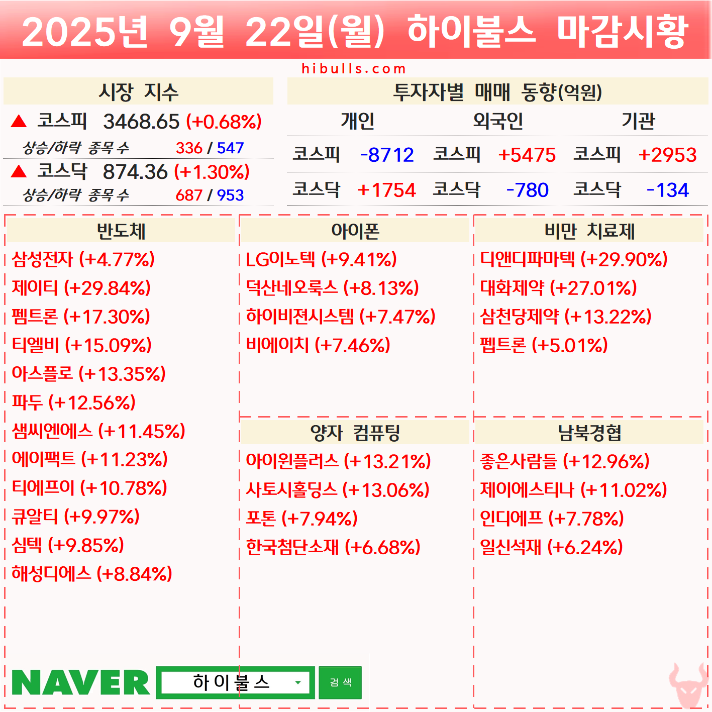 [09.22] 증시 마감시황 및 오늘의 특징주/특징섹터
