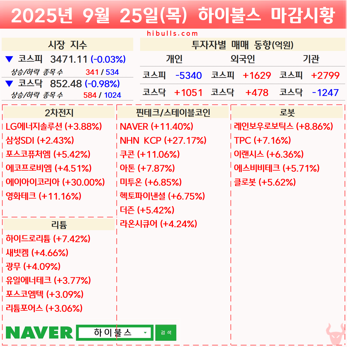 [09.25] 증시 마감시황 및 오늘의 특징주/특징섹터
