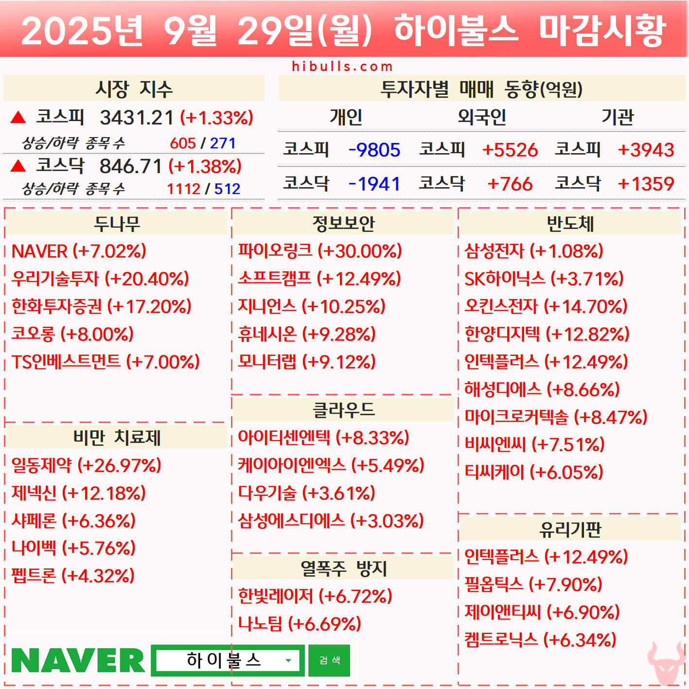 [09.29] 증시 마감시황 및 오늘의 특징주/특징섹터