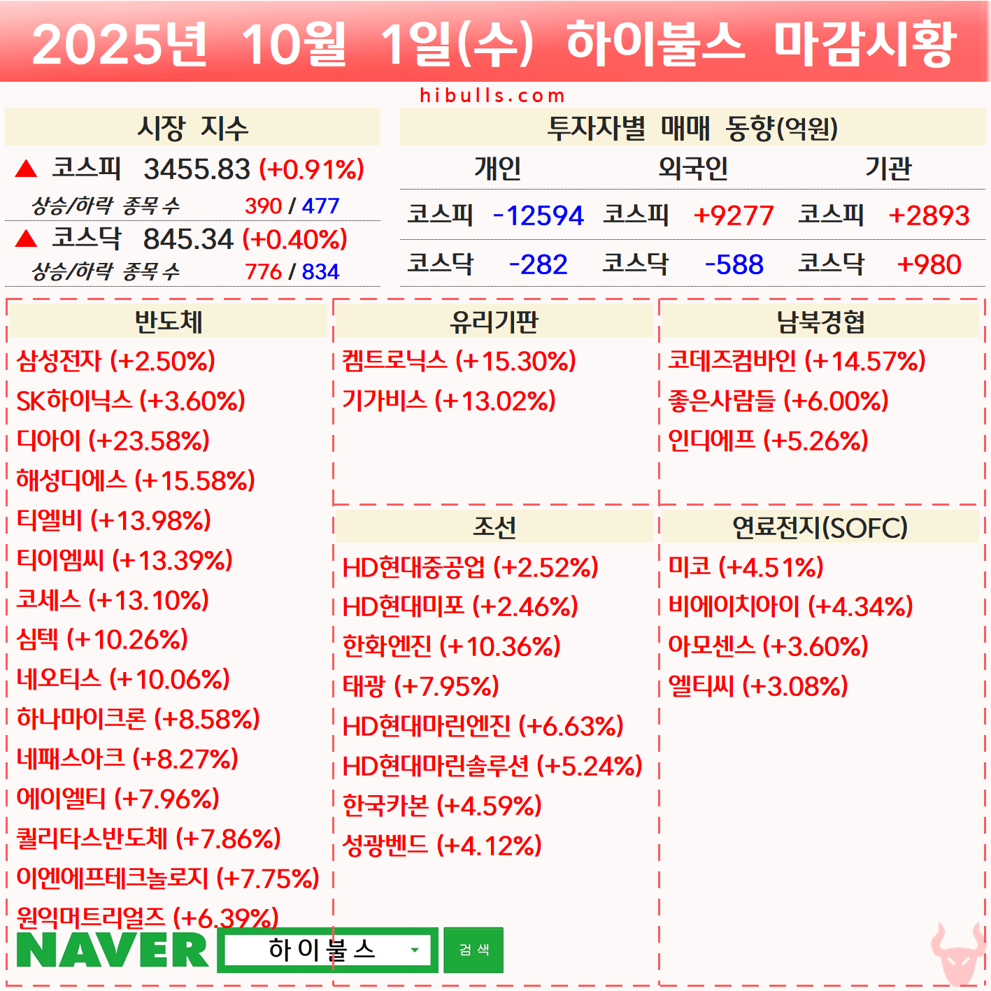 [10.01] 증시 마감시황 및 오늘의 특징주/특징섹터