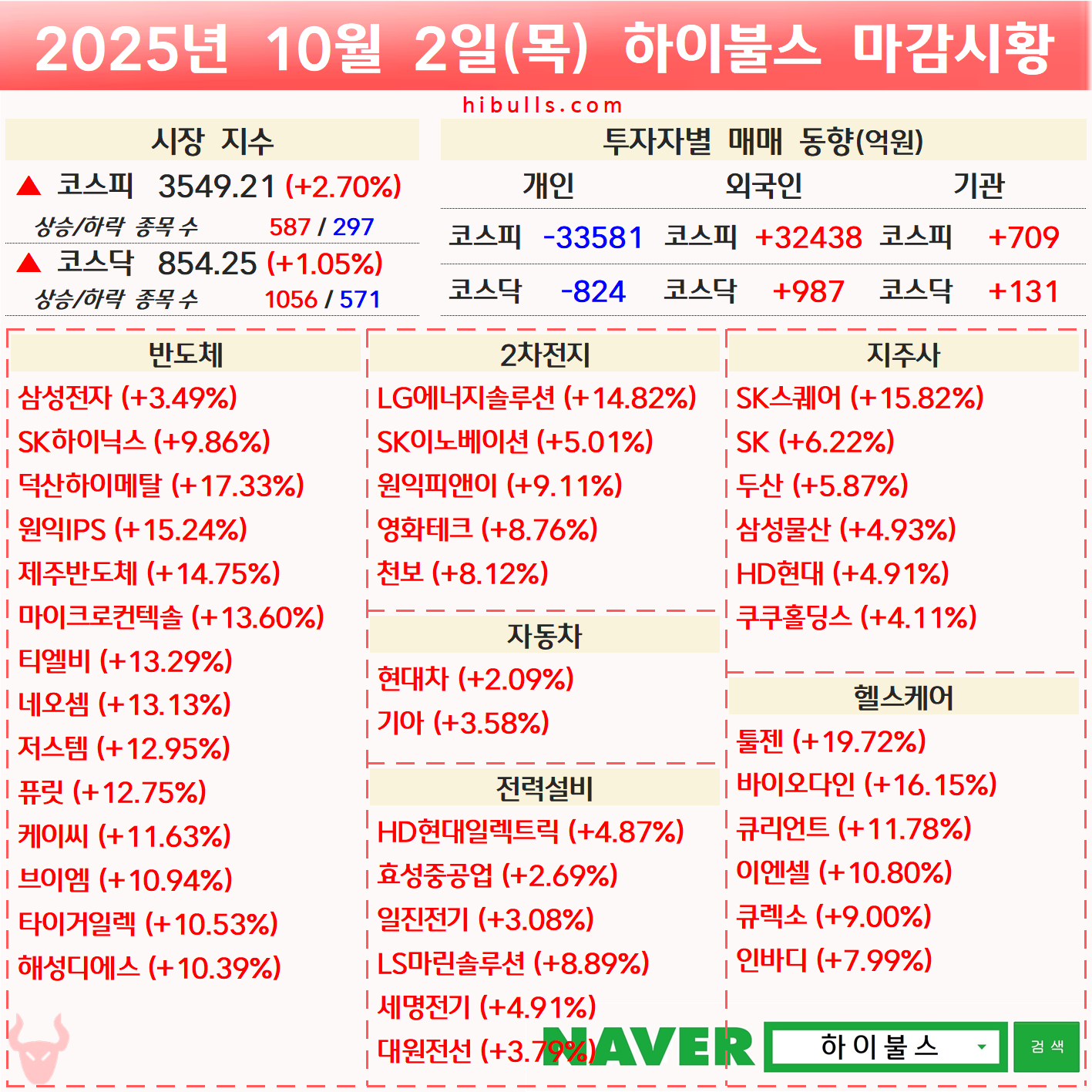 [10.02] 증시 마감시황 및 오늘의 특징주/특징섹터