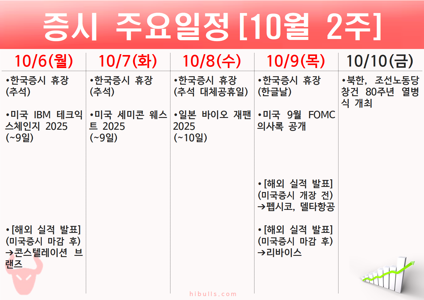 2025년 10월 2주(10.6~10.10) 주간 증시 주요 일정