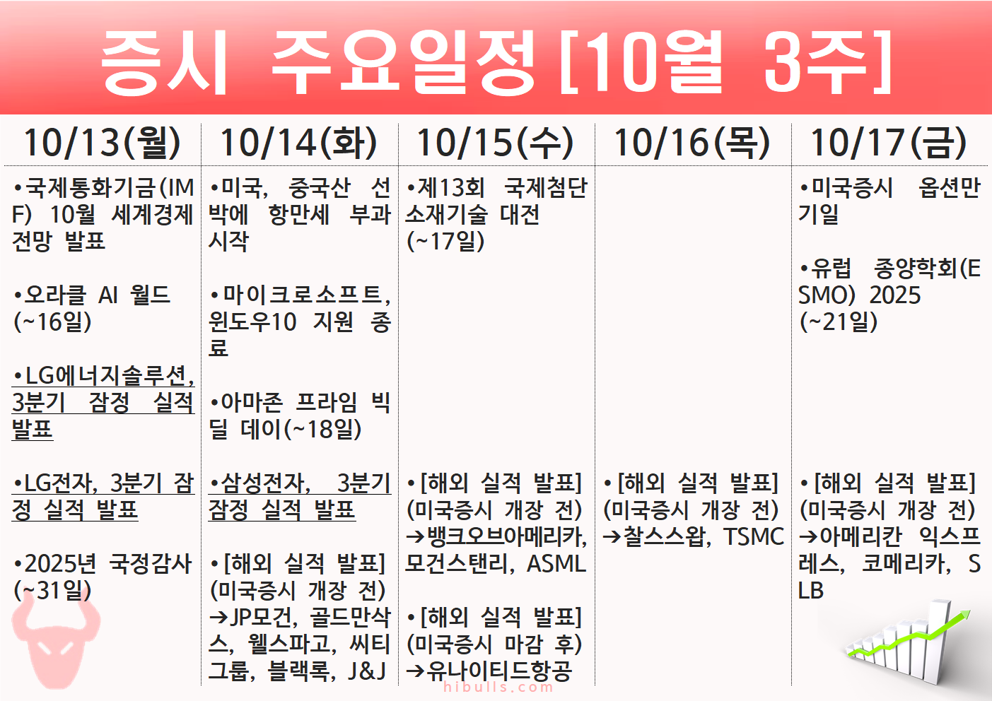 2025년 10월 3주(10.13~10.17) 주간 증시 주요 일정
