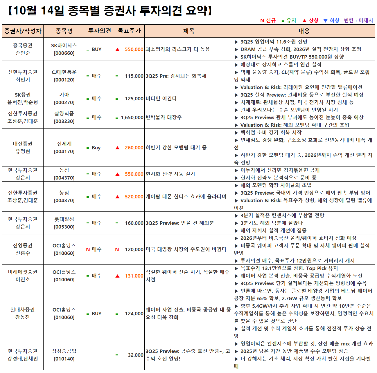 (이미지 내 글자가 잘 보이지 않으면 웹브라우저, 휴대폰 화면을 ‘가로화면’으로 보시거나, 이미지를 클릭하면 확대해서 보실 수 있습니다.) 글 내비게이션 [10.14] 증시 개장 전 시황&오늘의 대응 전략 [10.14] 증시 마감시황 및 오늘의 특징주/특징섹터