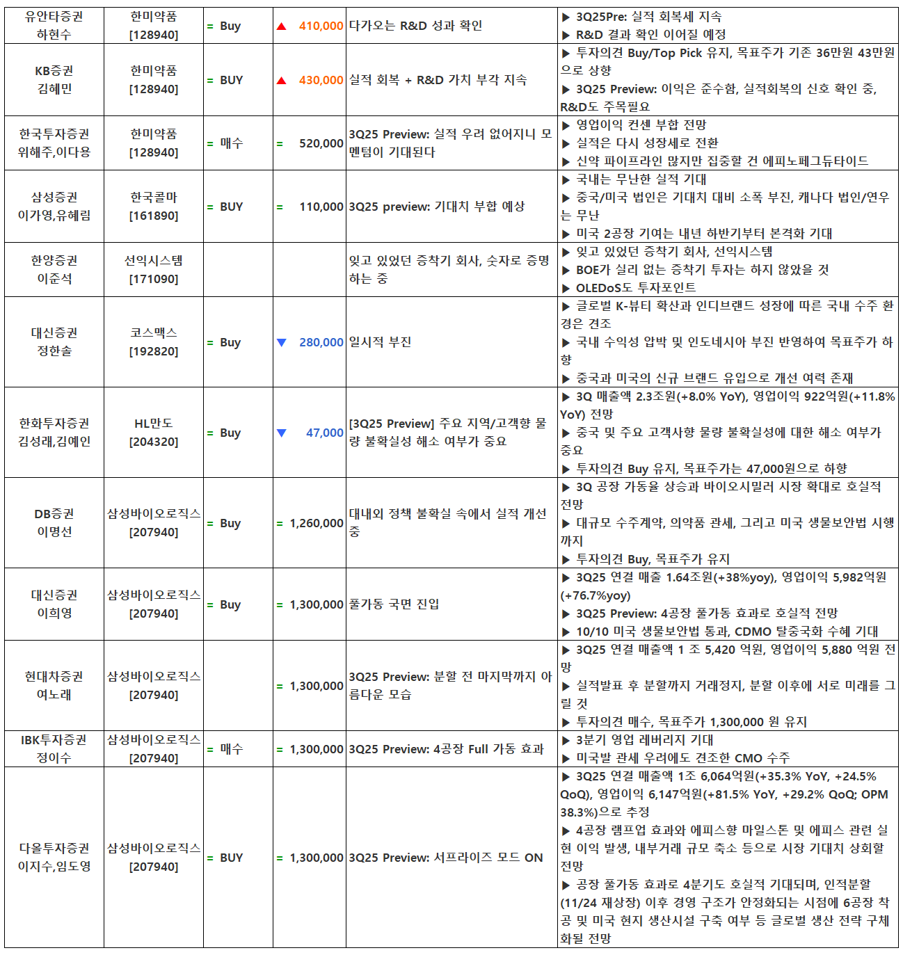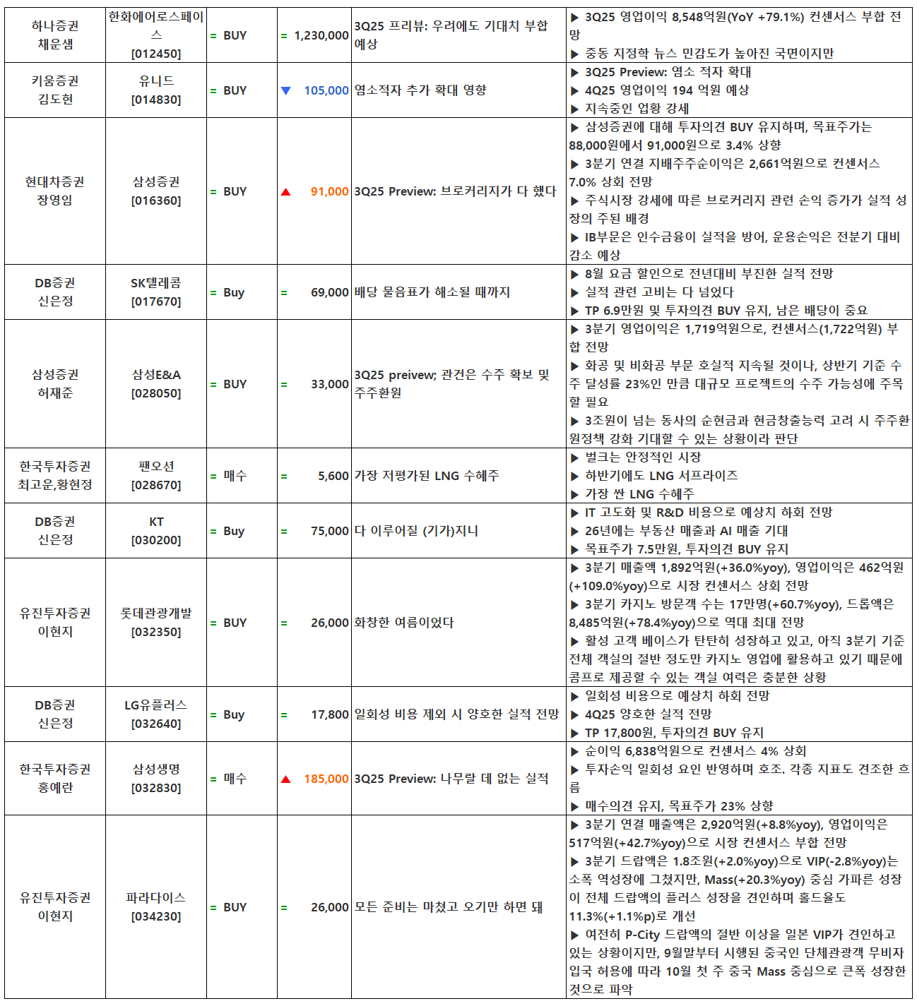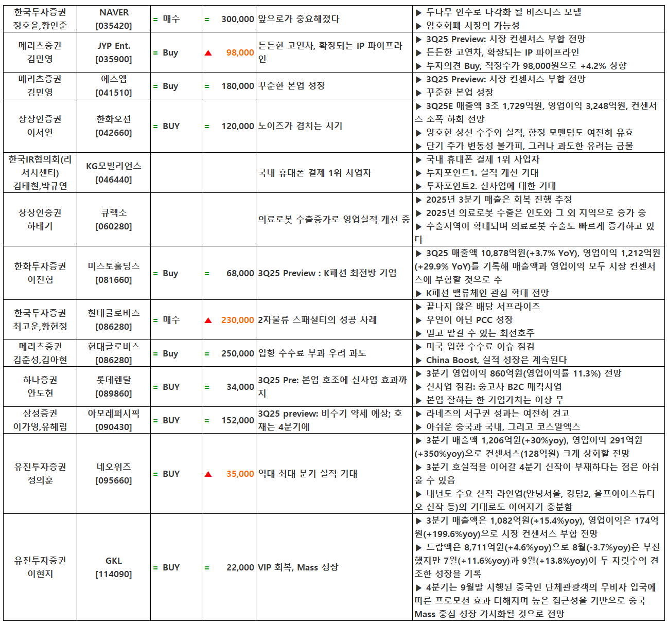 (이미지 내 글자가 잘 보이지 않으면 웹브라우저, 휴대폰 화면을 ‘가로화면’으로 보시거나, 이미지를 클릭하면 확대해서 보실 수 있습니다.) 글 내비게이션 2025년 3분기 실적 특징주(10월 14일 기준) [10.15] 증시 마감시황 및 오늘의 특징주