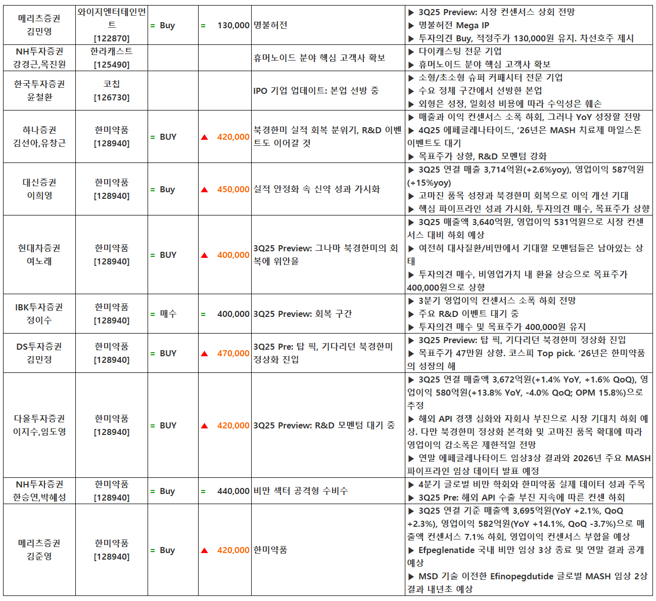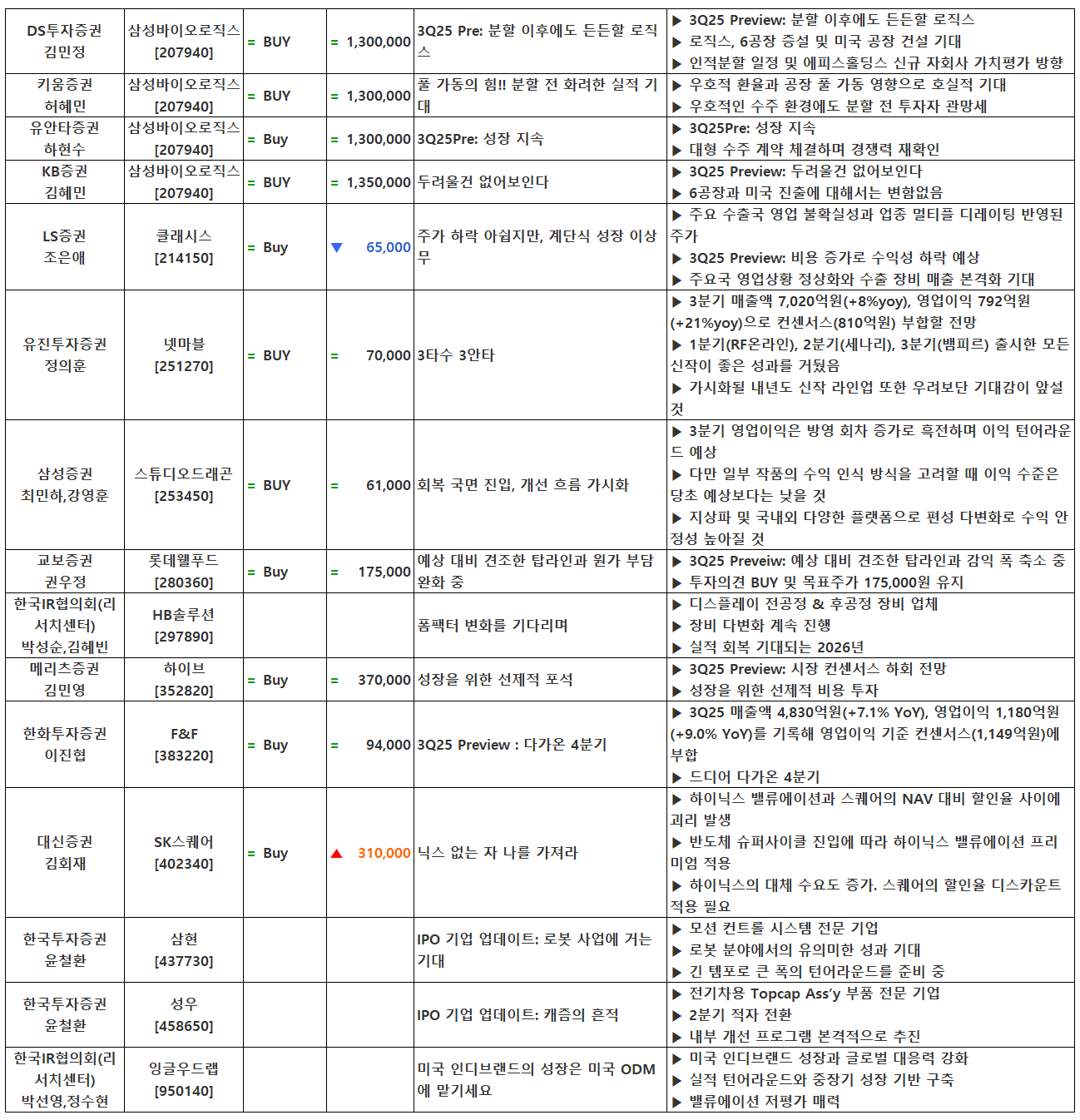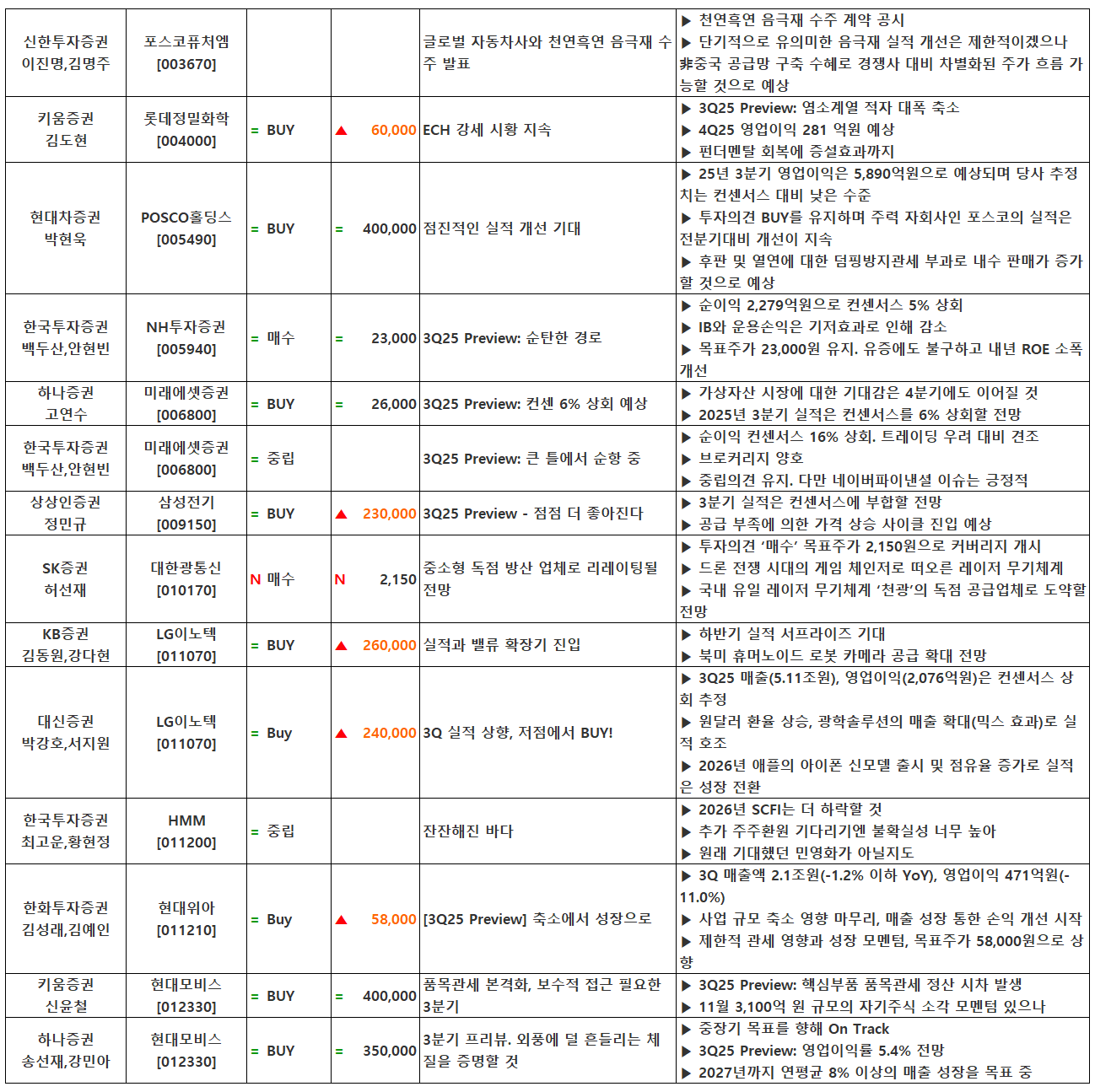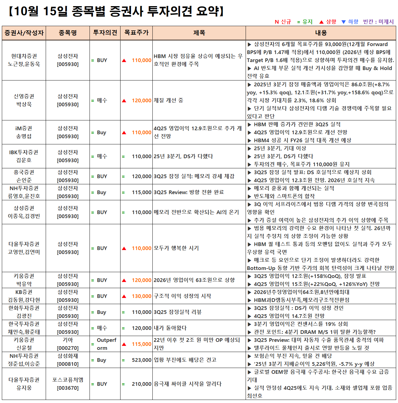 (이미지 내 글자가 잘 보이지 않으면 웹브라우저, 휴대폰 화면을 ‘가로화면’으로 보시거나, 이미지를 클릭하면 확대해서 보실 수 있습니다.) 글 내비게이션 2025년 3분기 실적 특징주(10월 14일 기준) [10.15] 증시 마감시황 및 오늘의 특징주