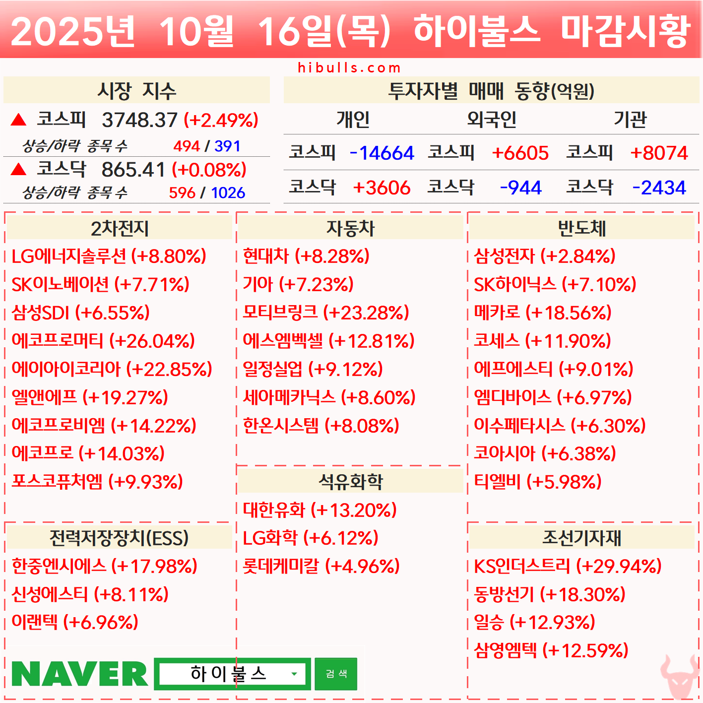[10.16] 증시 마감시황 및 오늘의 특징주