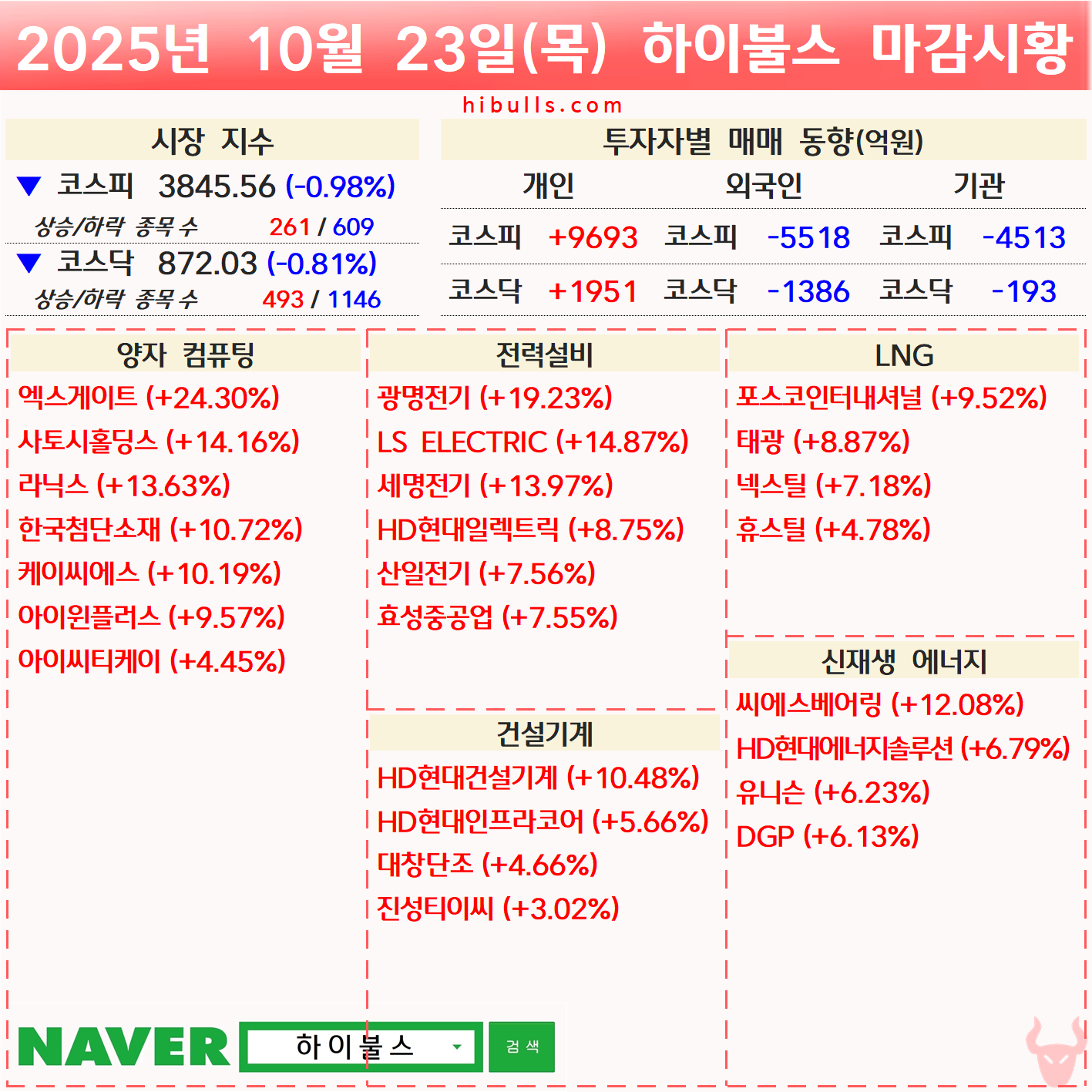 [10.23] 증시 마감시황 및 오늘의 특징주