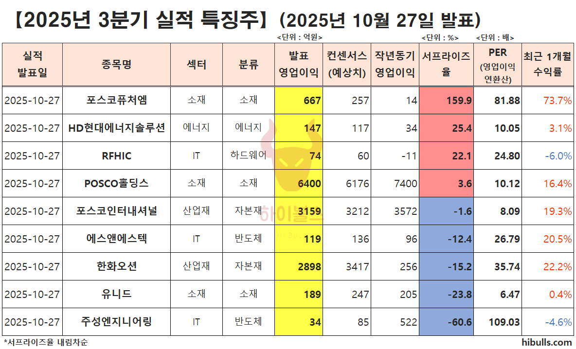 실적 서프라이즈 : 포스코퓨처엠, HD현대에너지솔루션, RFHIC