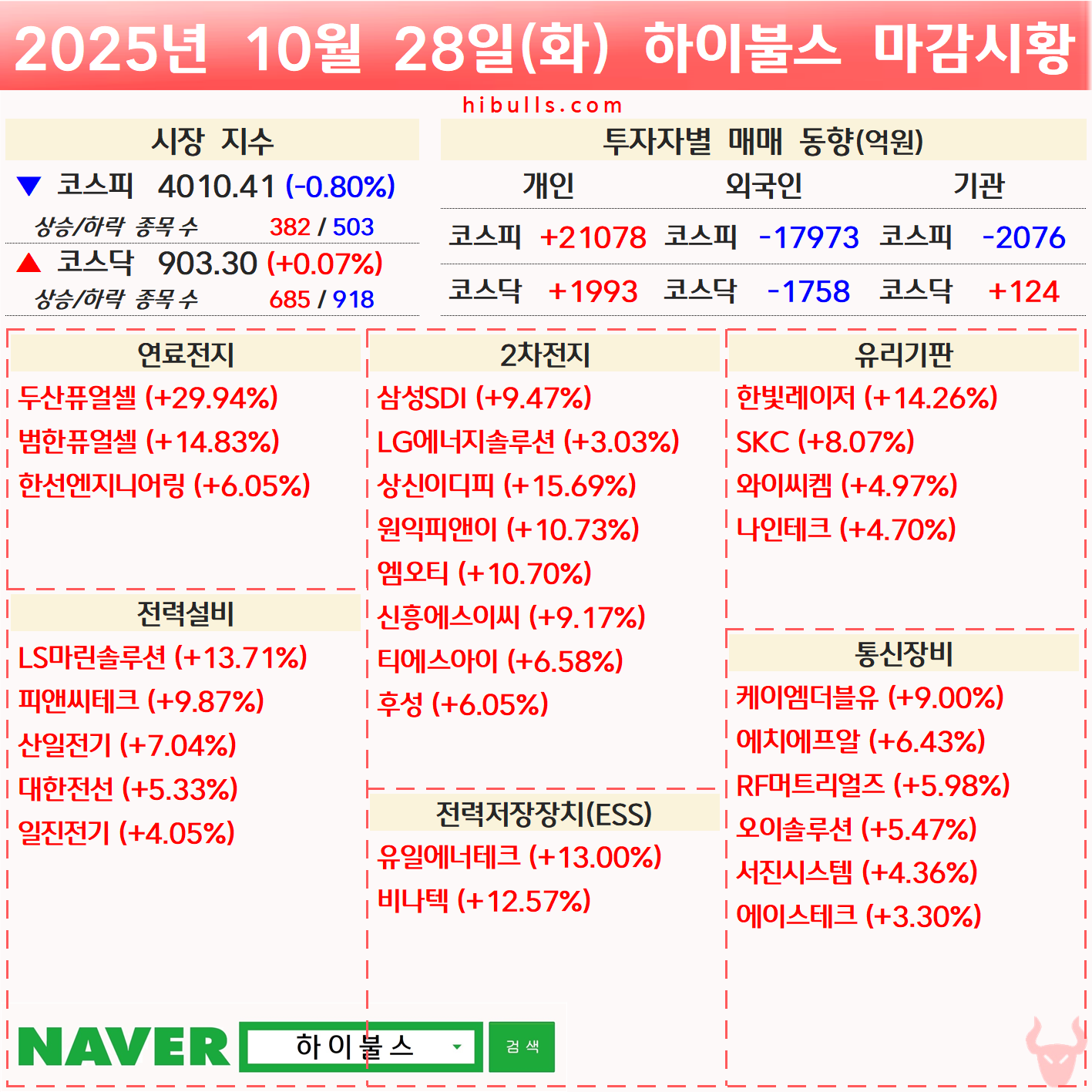 [10.28] 증시 마감시황 및 오늘의 특징주