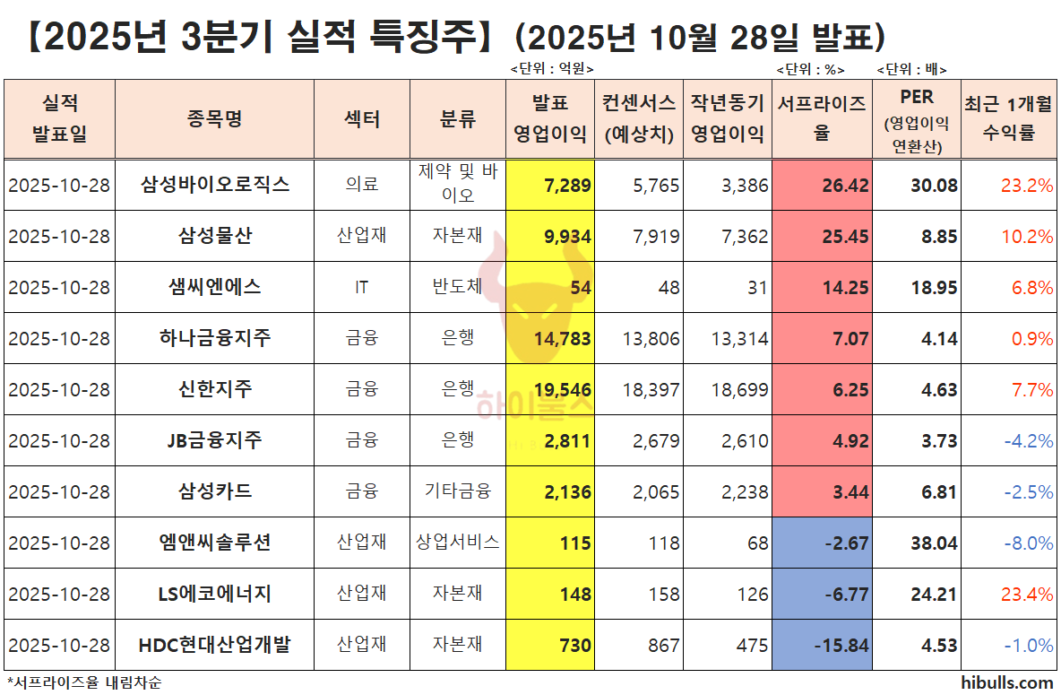 실적 부합 : 하나금융지주, 신한지주, JB금융지주, 삼성카드, 엠앤씨솔루션, LS에코에너지