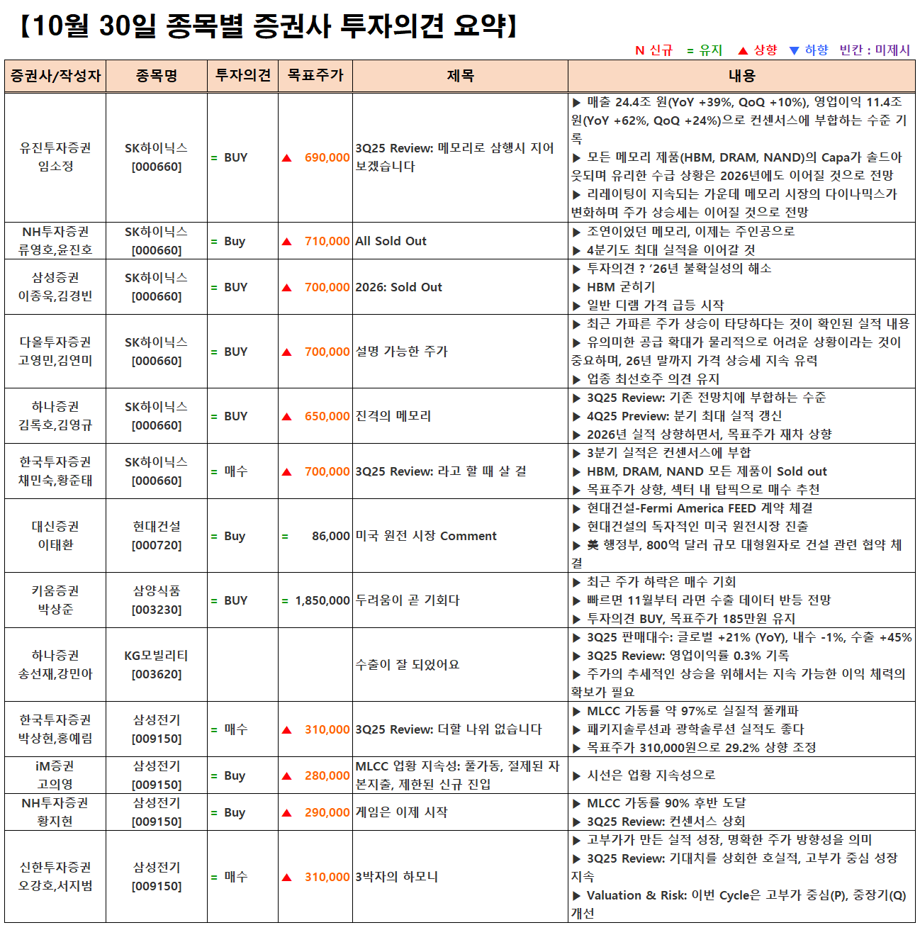 (이미지 내 글자가 잘 보이지 않으면 웹브라우저, 휴대폰 화면을 ‘가로화면’으로 보시거나, 이미지를 클릭하면 확대해서 보실 수 있습니다.) 글 내비게이션 2025년 3분기 실적 특징주(10월 29일) [10.30] 증시 마감시황 및 오늘의 특징주