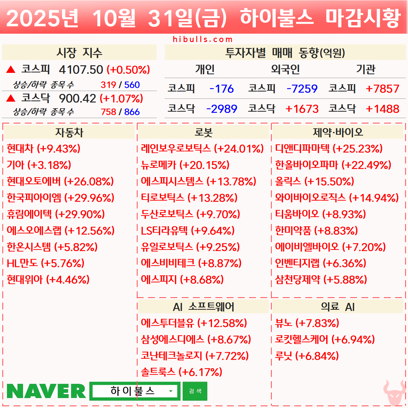 [10.31] 증시 마감시황 및 오늘의 특징주
