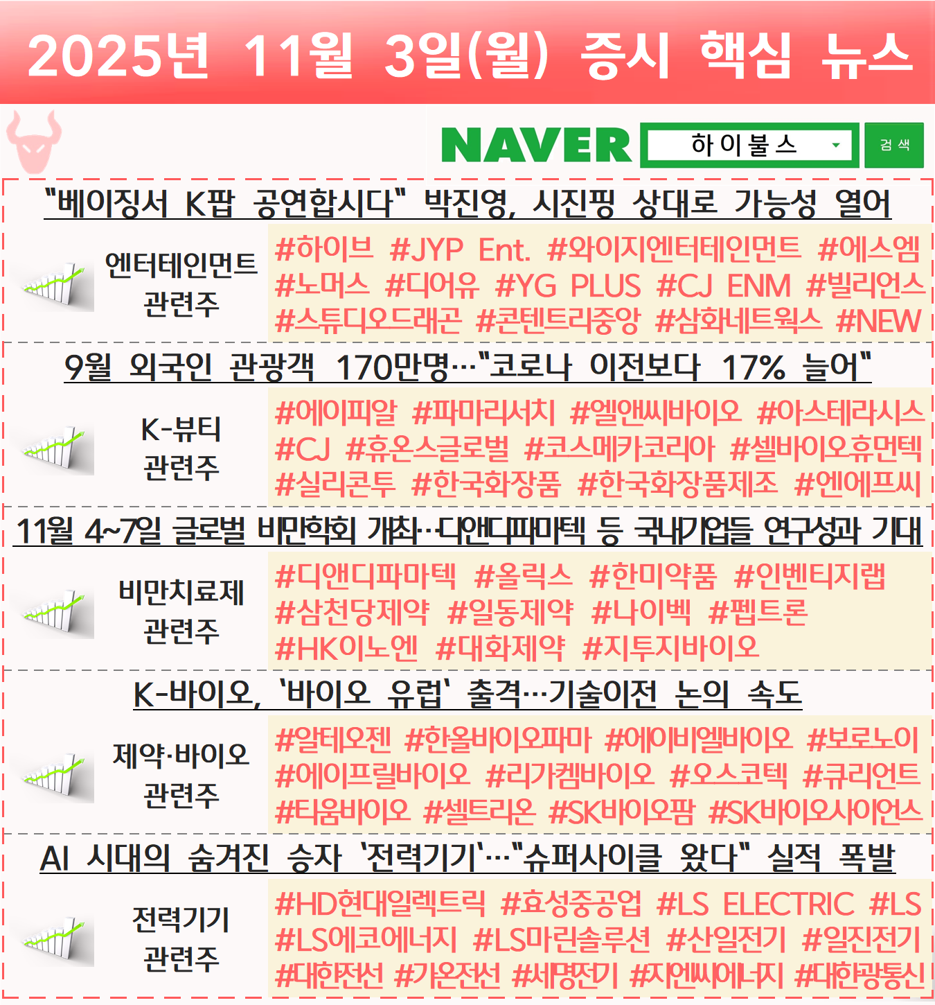 엔터테인먼트 관련주, K-콘텐츠 관련주, K-뷰티 관련주, K뷰티 관련주, 비만치료제 관련주, 비만 치료제 관련주, 비만 관련주, 제약 바이오 관련주, 전력기기 관련주, 전력망 관련주, 전력설비 관련주
