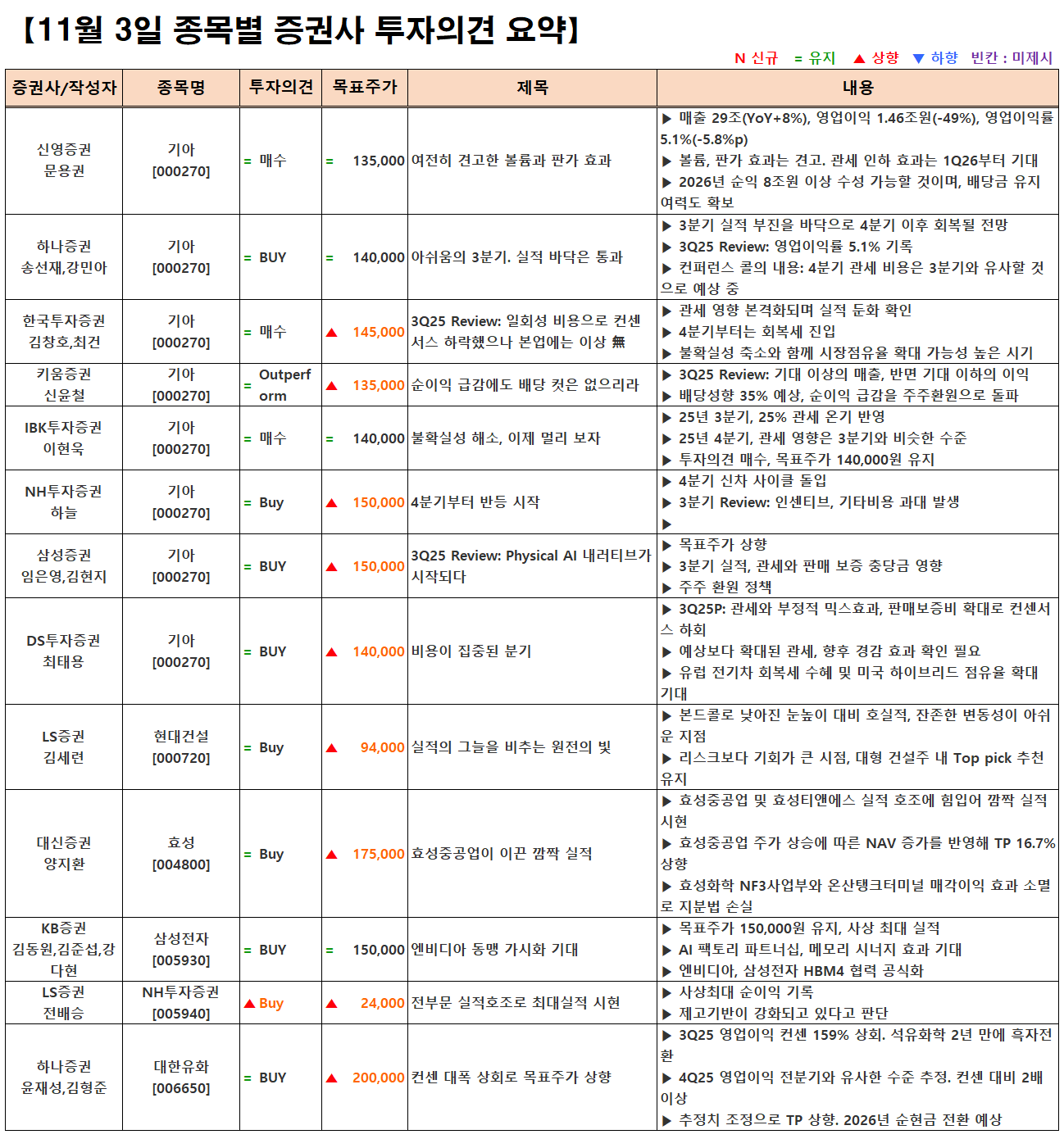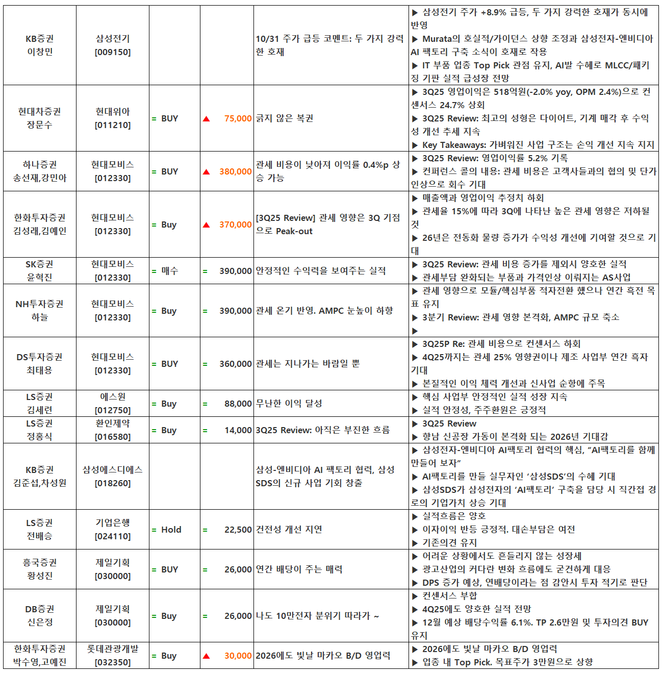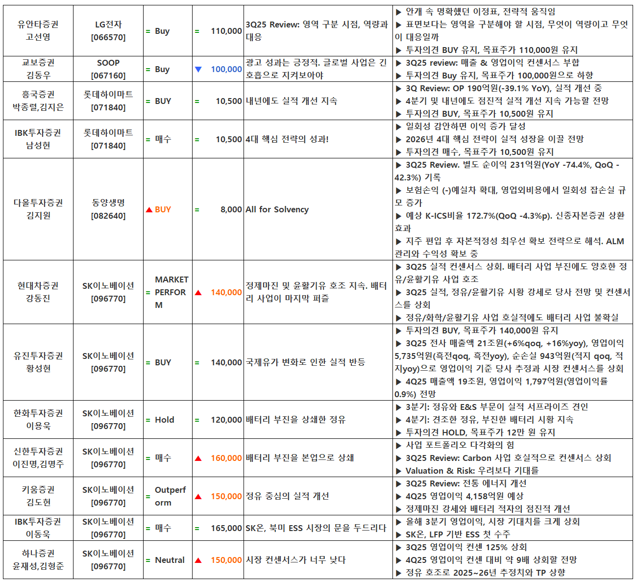 (이미지 내 글자가 잘 보이지 않으면 웹브라우저, 휴대폰 화면을 ‘가로화면’으로 보시거나, 이미지를 클릭하면 확대해서 보실 수 있습니다.) 글 내비게이션 2025년 3분기 실적 특징주(10월 31일) [11.03] 증시 마감시황 및 오늘의 특징주