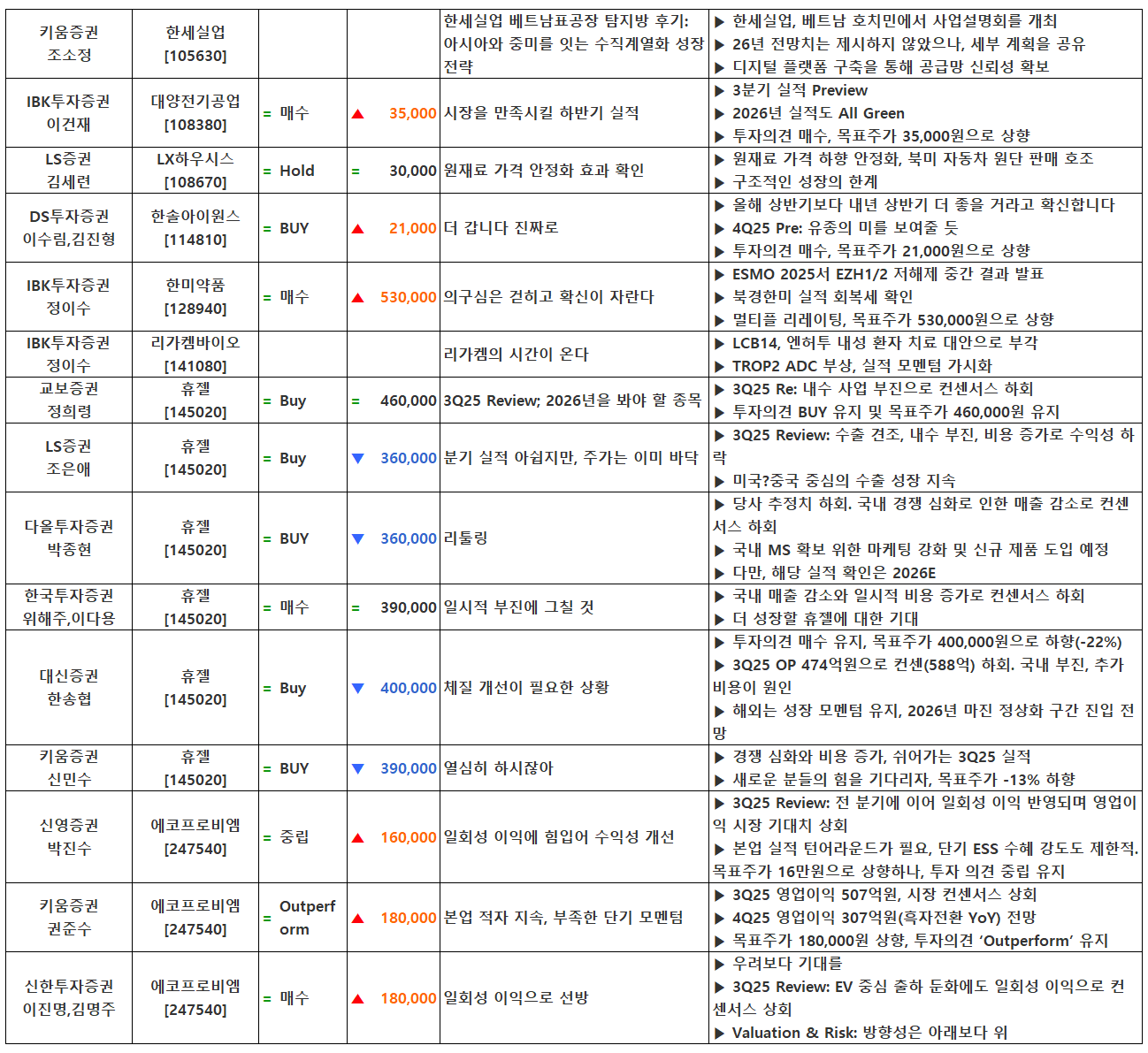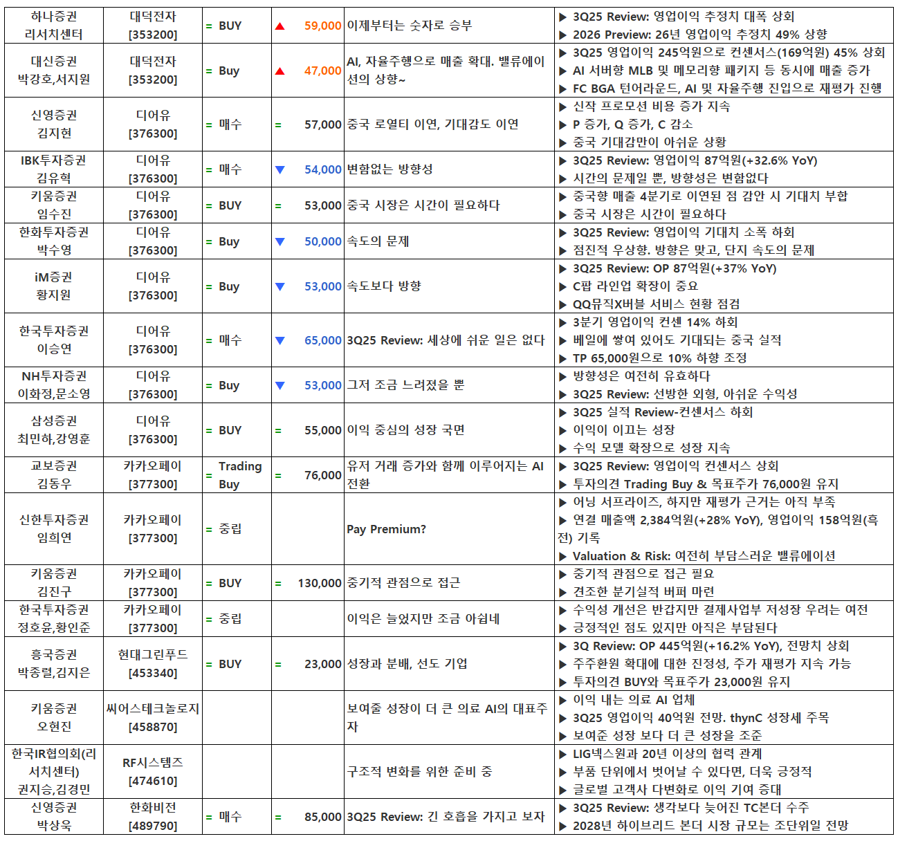 (이미지 내 글자가 잘 보이지 않으면 웹브라우저, 휴대폰 화면을 ‘가로화면’으로 보시거나, 이미지를 클릭하면 확대해서 보실 수 있습니다.) 글 내비게이션 2025년 3분기 실적 특징주(11월 4일) [11.05] 증시 마감시황 및 오늘의 특징주