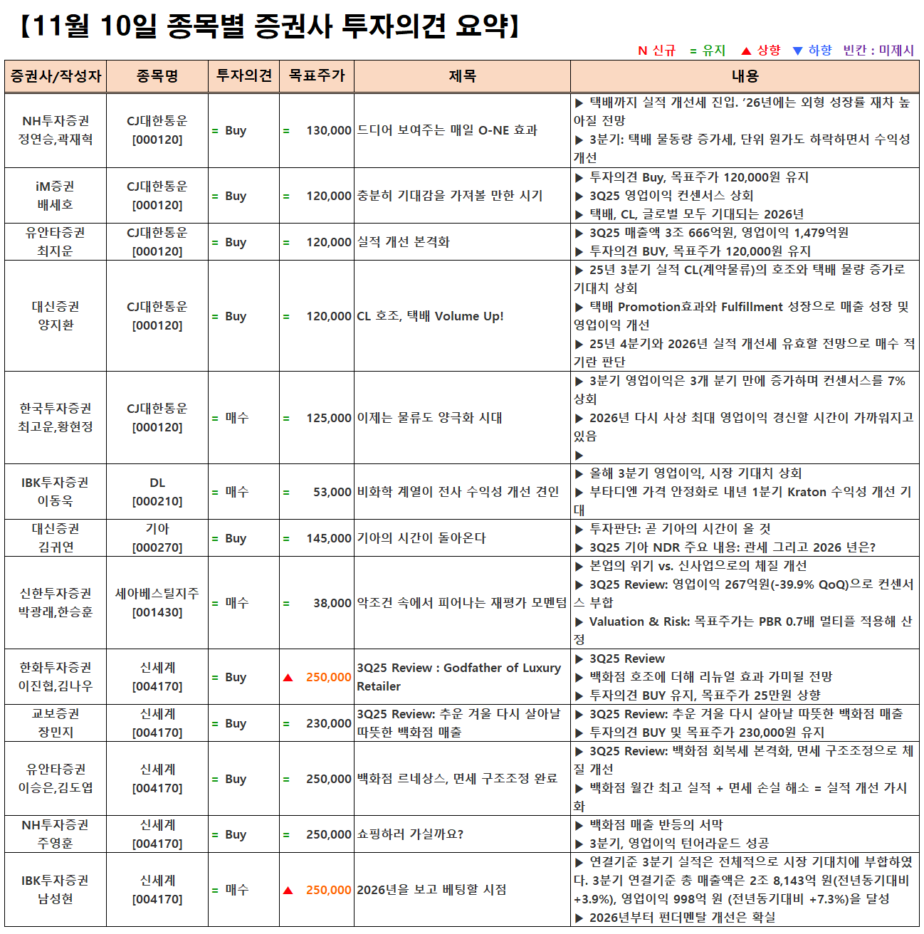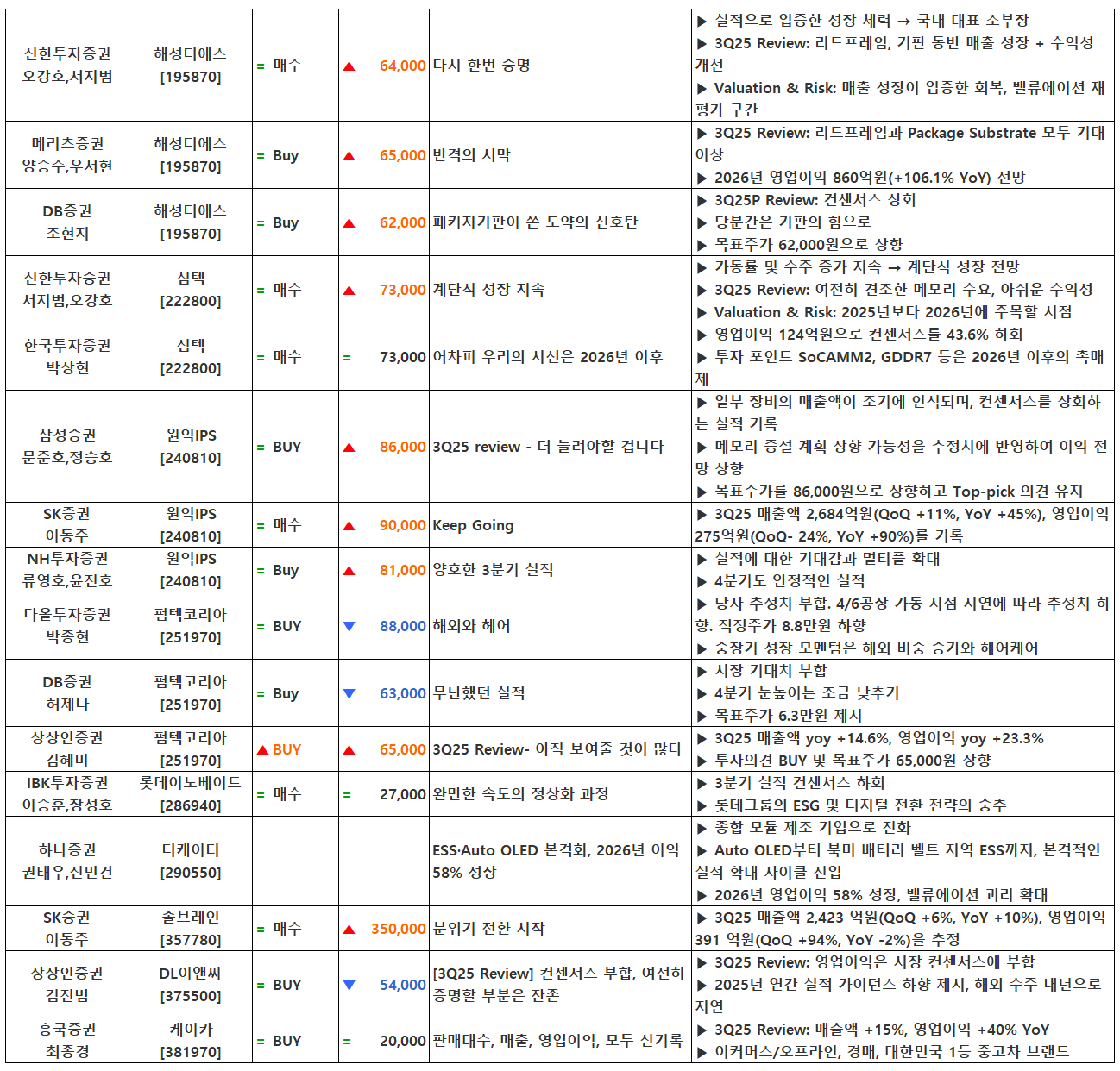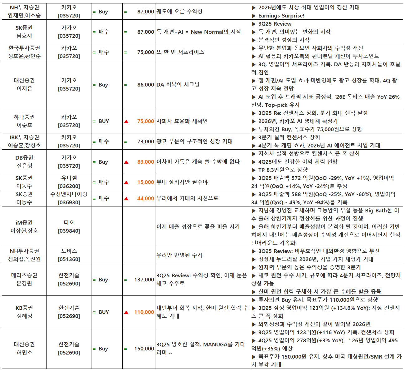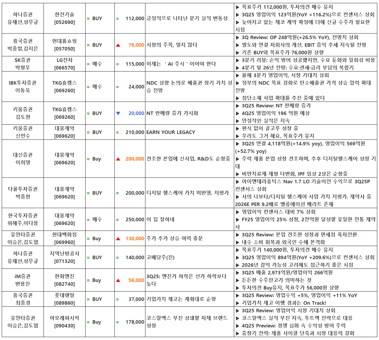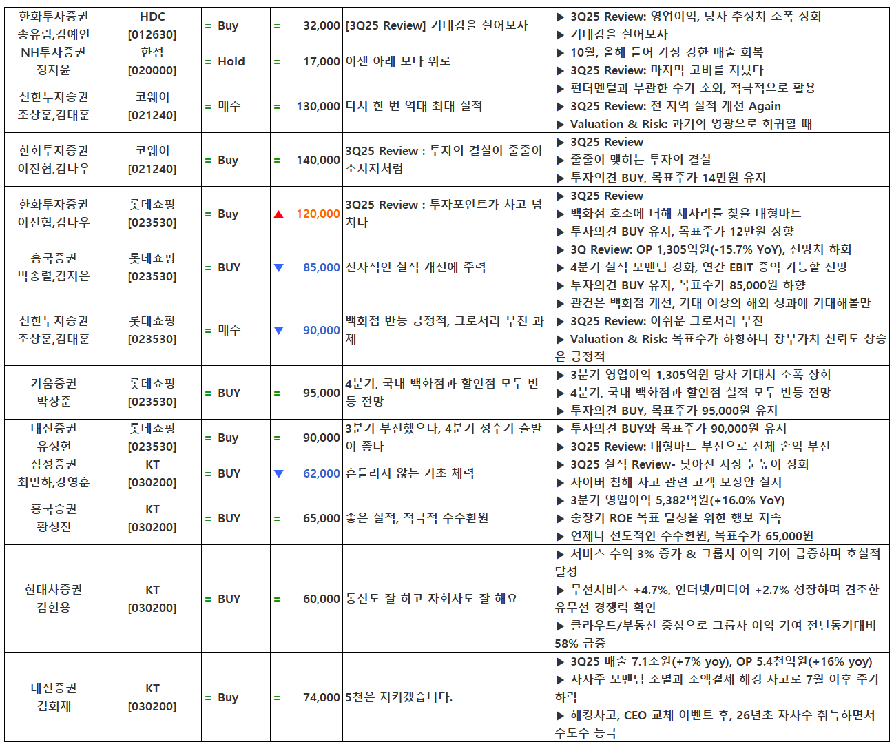 (이미지 내 글자가 잘 보이지 않으면 웹브라우저, 휴대폰 화면을 ‘가로화면’으로 보시거나, 이미지를 클릭하면 확대해서 보실 수 있습니다.) 글 내비게이션 2025년 3분기 실적 특징주(11월 7일) [11.10] 증시 마감시황 및 오늘의 특징주
