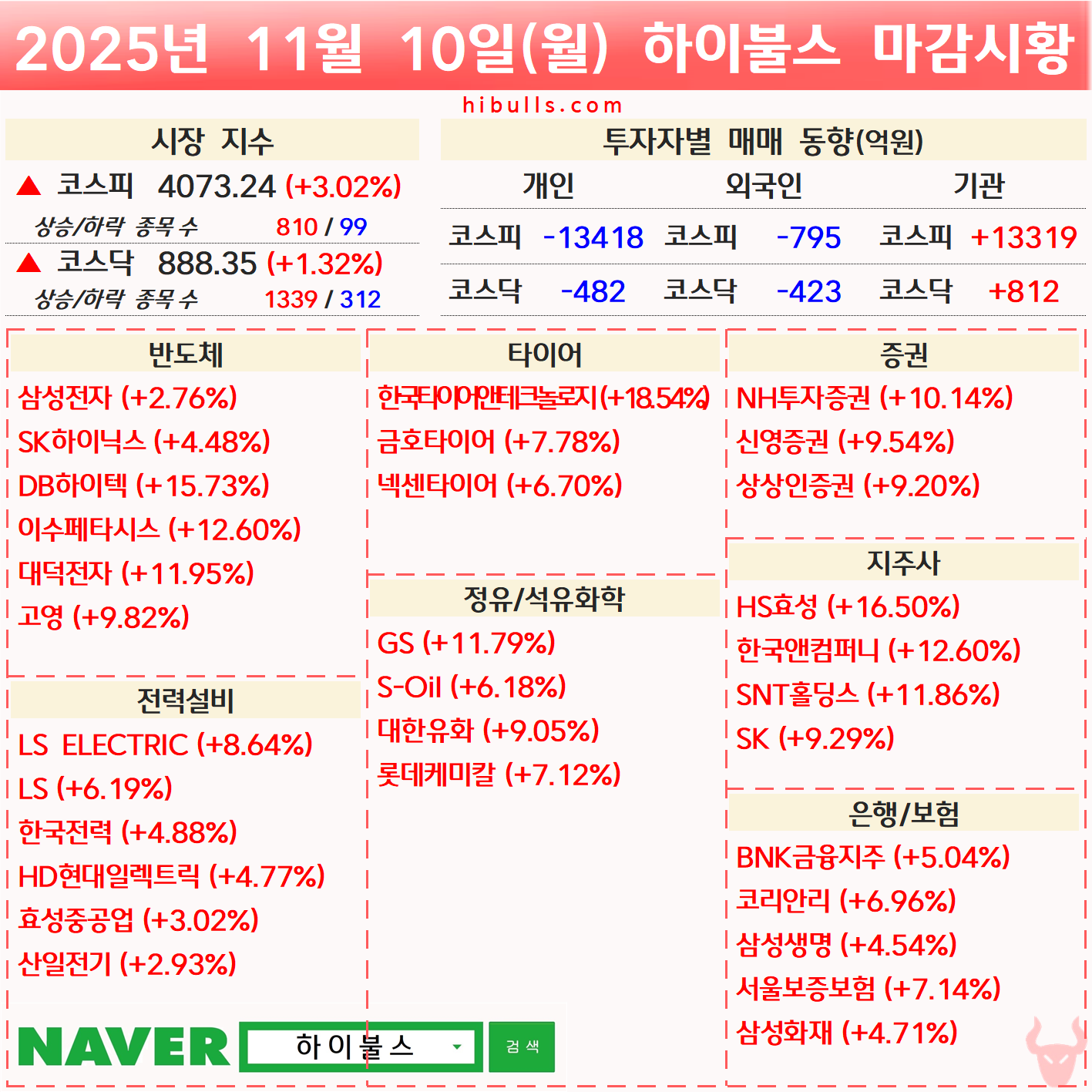[11.10] 증시 마감시황 및 오늘의 특징주