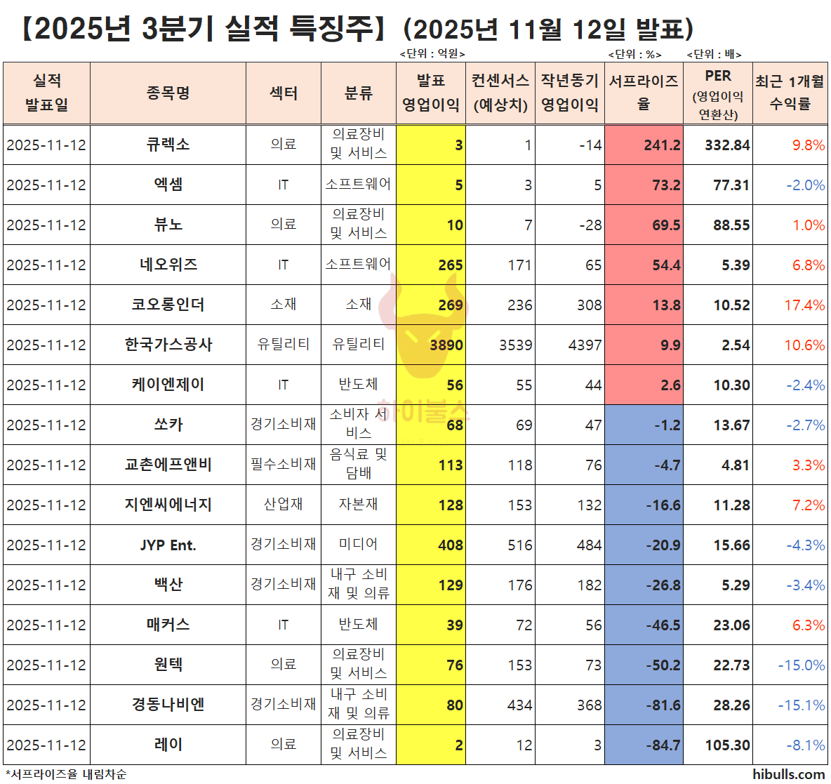 실적 쇼크 : 지엔씨에너지, JYP Ent., 백산, 매커스, 원텍, 경동나비엔, 레이