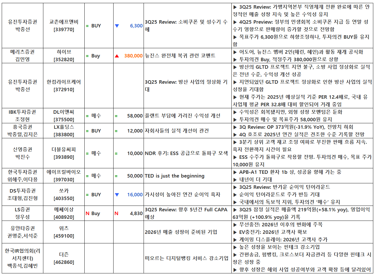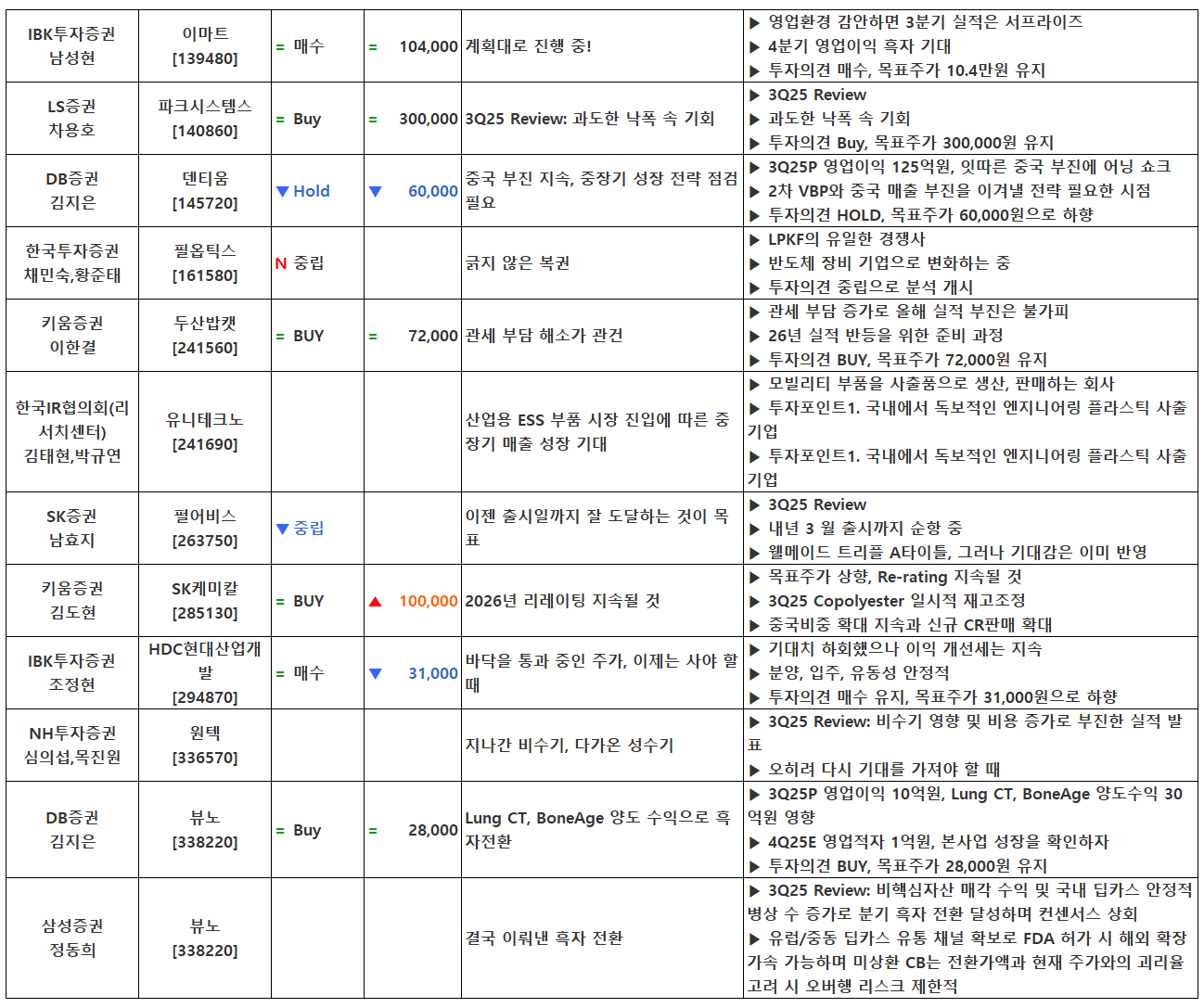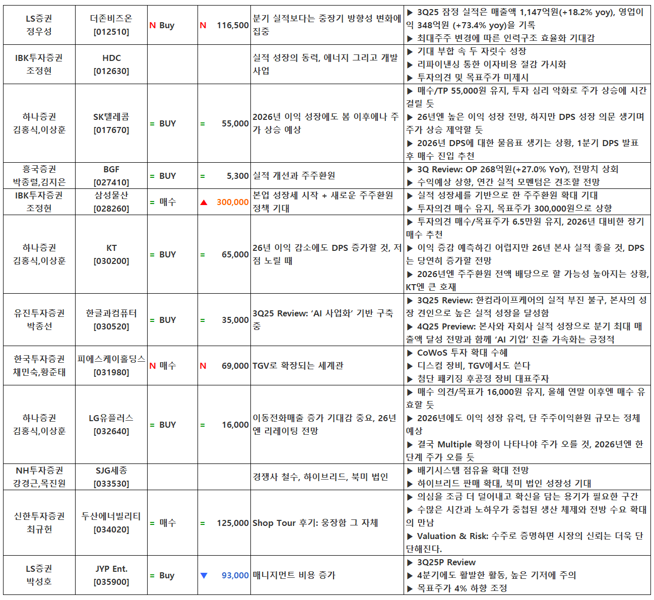 (이미지 내 글자가 잘 보이지 않으면 웹브라우저, 휴대폰 화면을 ‘가로화면’으로 보시거나, 이미지를 클릭하면 확대해서 보실 수 있습니다.) 글 내비게이션 2025년 3분기 실적 특징주(11월 12일) [11.13] 증시 마감시황 및 오늘의 특징주