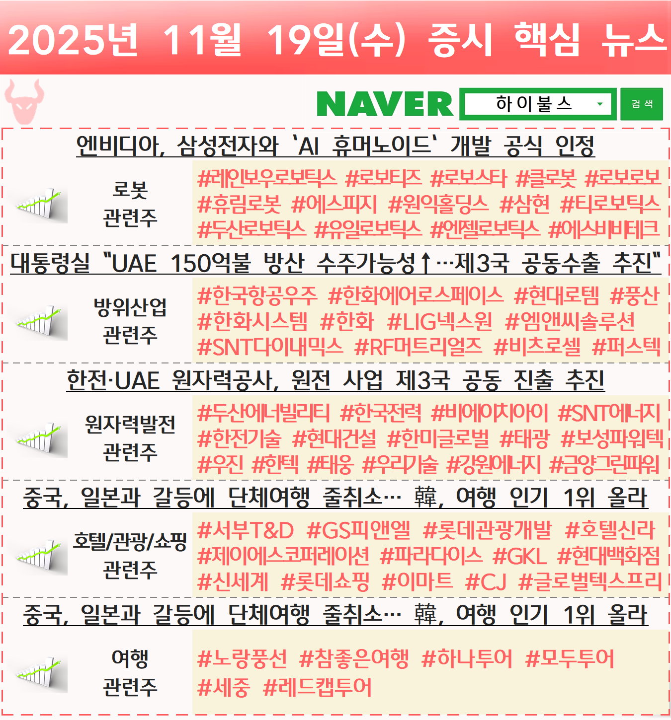 로봇 관련주, 휴머노이드 관련주, 방산 관련주, 방위산업 관련주, 원전 관련주, 원자력 관련주, 원자력에너지 관련주, 원자력 에너지 관련주, 원자력발전 관련주, 호텔 관련주, 관광 관련주, 쇼핑 관련주, 한일령 관련주, 여행 관련주