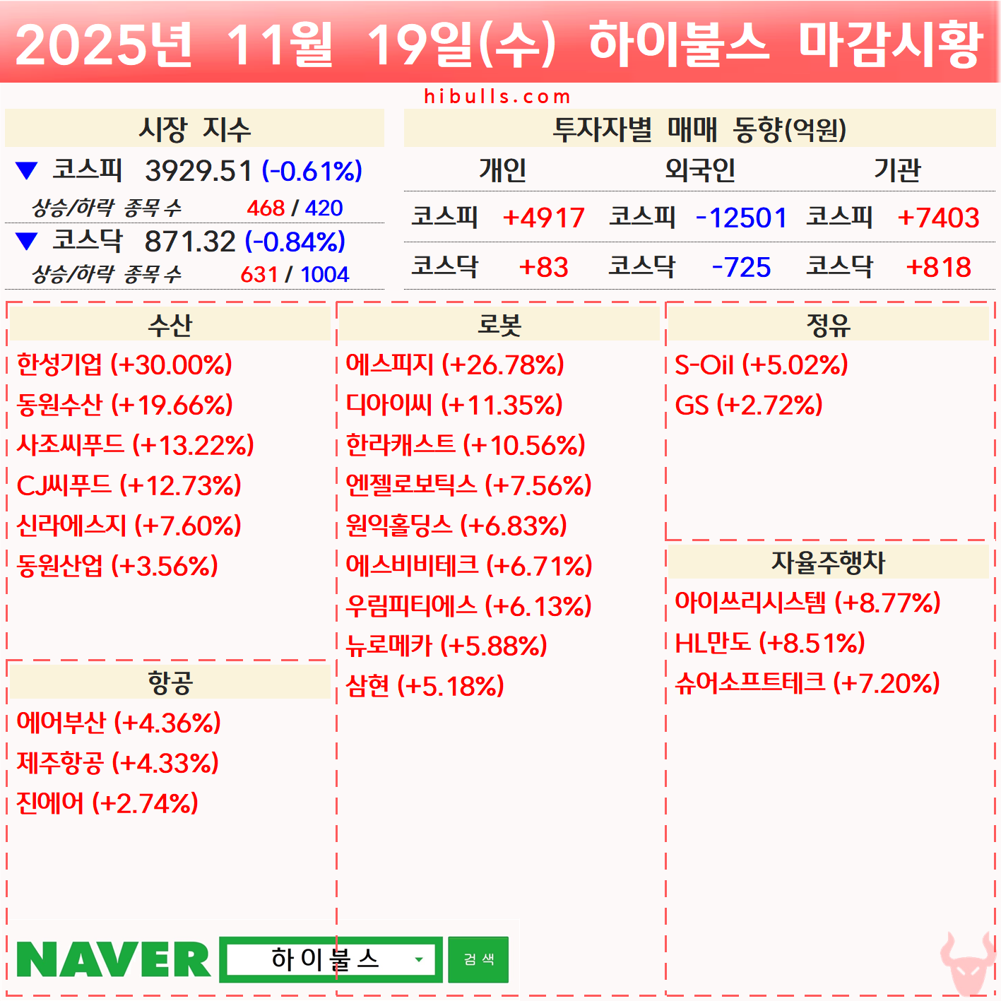 [11.19] 증시 마감시황 및 오늘의 특징주