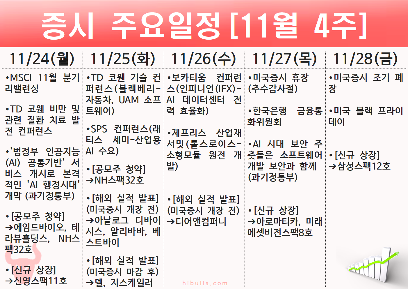 2025년 11월 4주(11.24~11.28) 주간 증시 주요 일정
