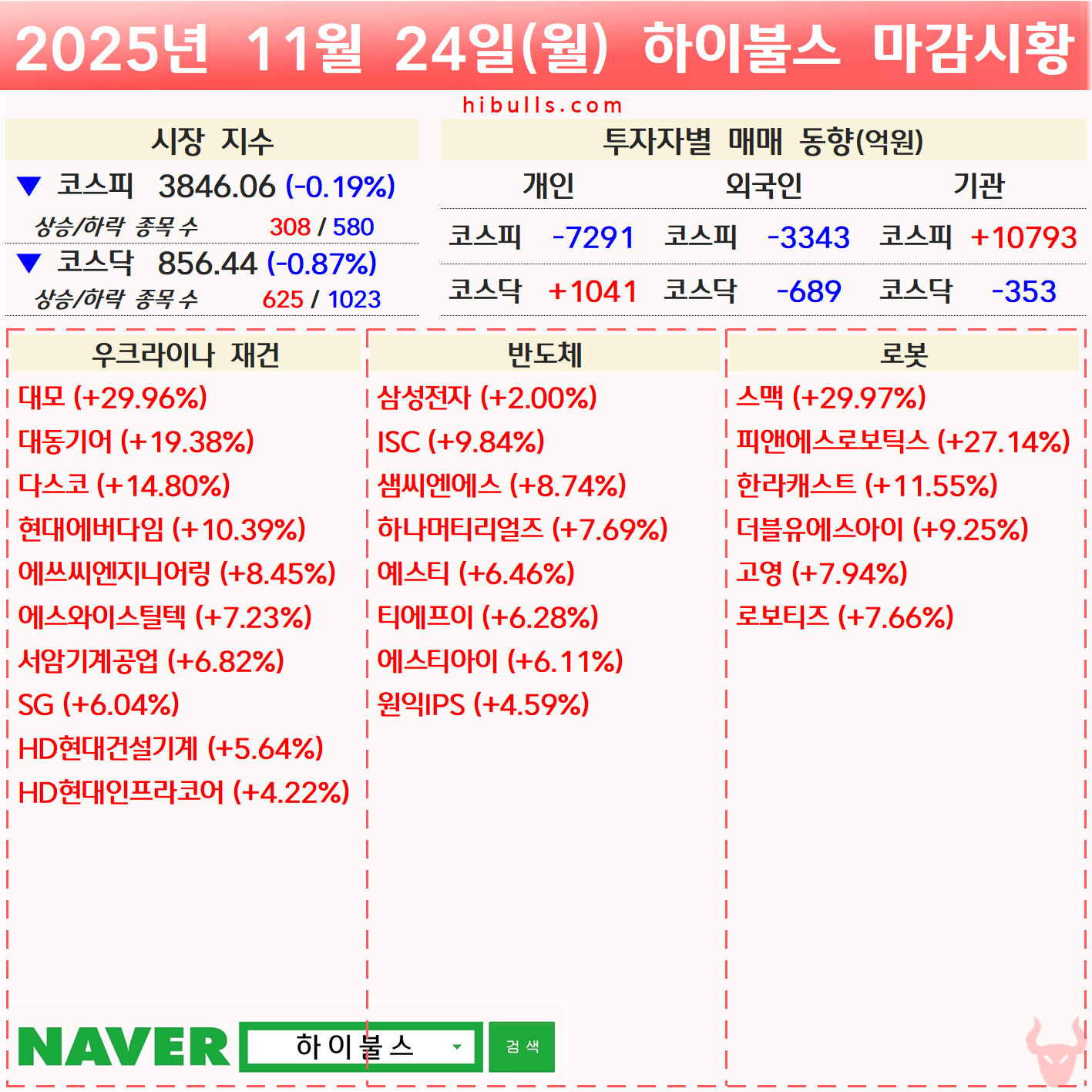 [11.24] 증시 마감시황 및 오늘의 특징주