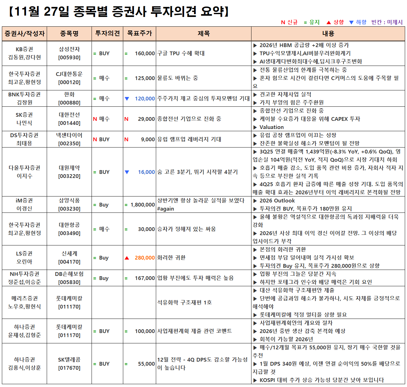 (이미지 내 글자가 잘 보이지 않으면 웹브라우저, 휴대폰 화면을 ‘가로화면’으로 보시거나, 이미지를 클릭하면 확대해서 보실 수 있습니다.) 글 내비게이션 [11.27] 증시 개장 전 시황&오늘의 대응 전략 [11.27] 증시 마감시황 및 오늘의 특징주