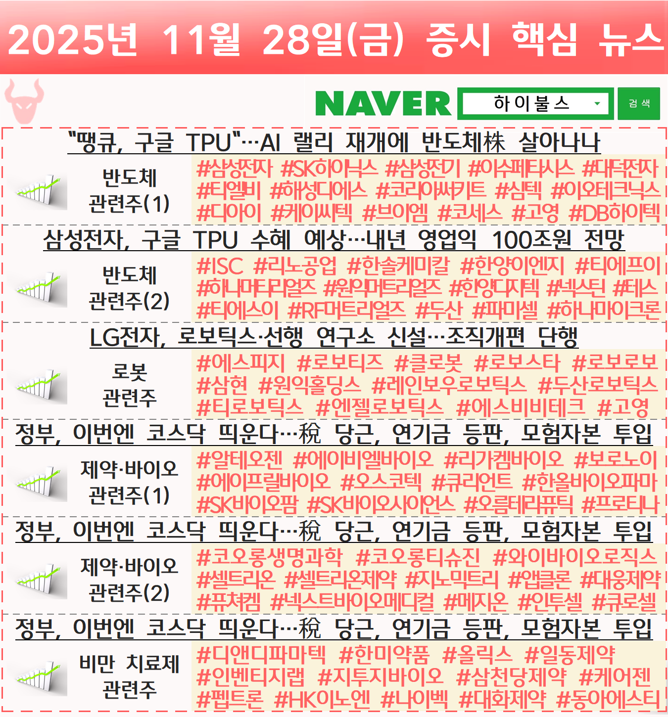 반도체 관련주, TPU 관련주, 로봇 관련주, 휴머노이드 관련주, 피지컬 AI 관련주, 제약 바이오 관련주, 비만 관련주, 비만약 관련주, 비만치료제 관련주, 비만 치료제 관련주, 위고비 관련주, 마운자로 관련주