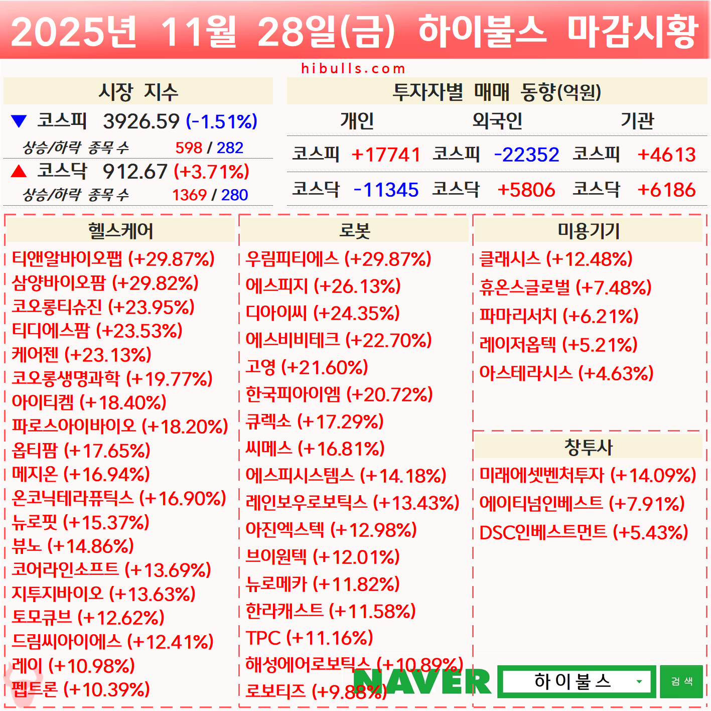 [11.28] 증시 마감시황 및 오늘의 특징주