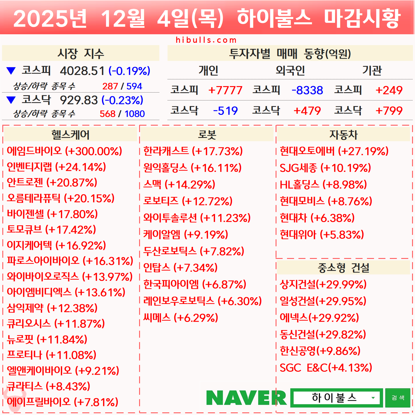 [12.04] 증시 마감시황 및 오늘의 특징주