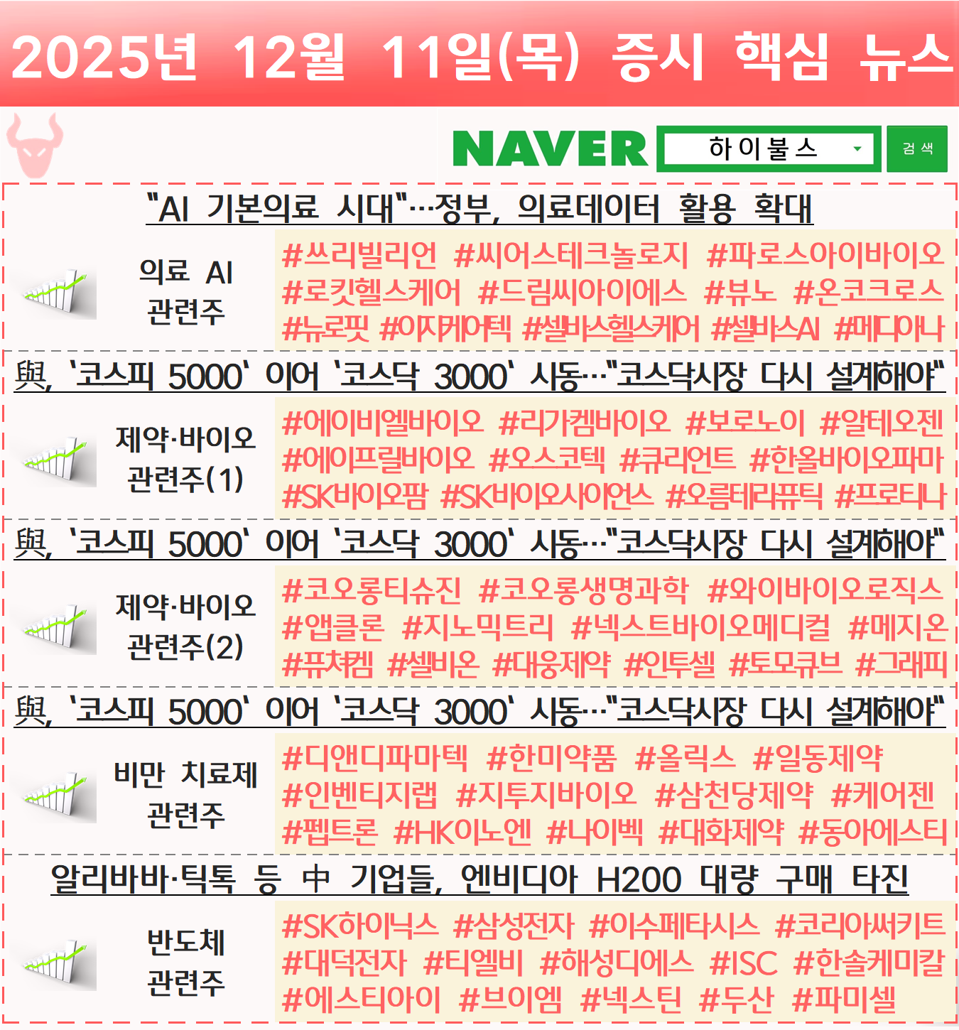 의료AI 관련주, 의료 AI 관련주, 제약 바이오 관련주, 비만 관련주, 비만약 관련주, 비만치료제 관련주, 비만 치료제 관련주, 반도체 관련주 글 내비게이션 [12.10] 증시 개장 전 핵심뉴스 하이불스 Pick